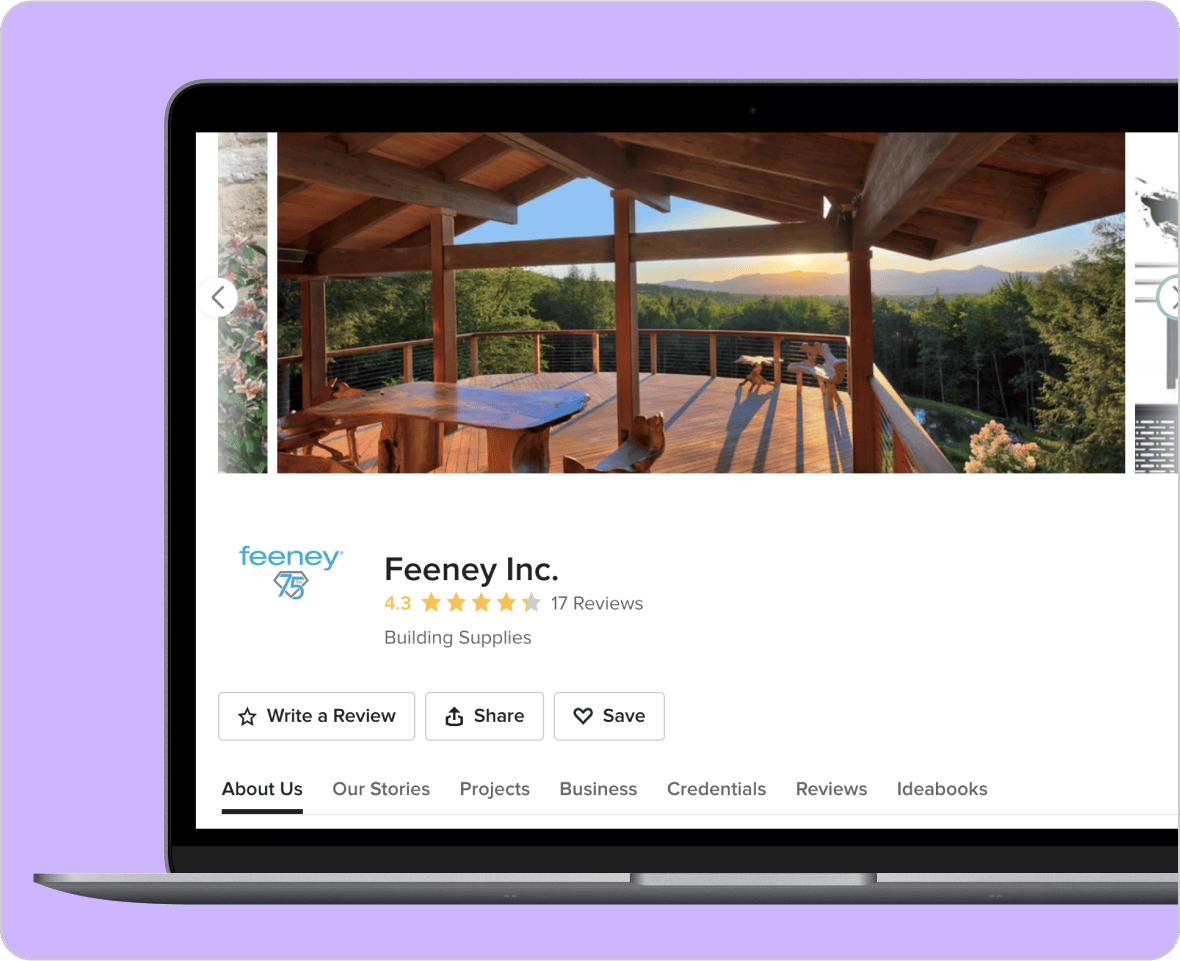 ...Houzz has a great user base of affluent homeowners who are invested in creating beautiful spaces and integrating new trends. We decided to advertise on Houzz because it is important to us to have different ways to showcase our brand; we can do that on Houzz with our native advertisements and our sponsored stories. Our articles, written by reputable Houzz editors in collaboration with our technical staff, are regarded with trust by consumers and speak volumes about our products and our standing in the industry. Our branding on Houzz keeps Feeney top of mind for consumers.”