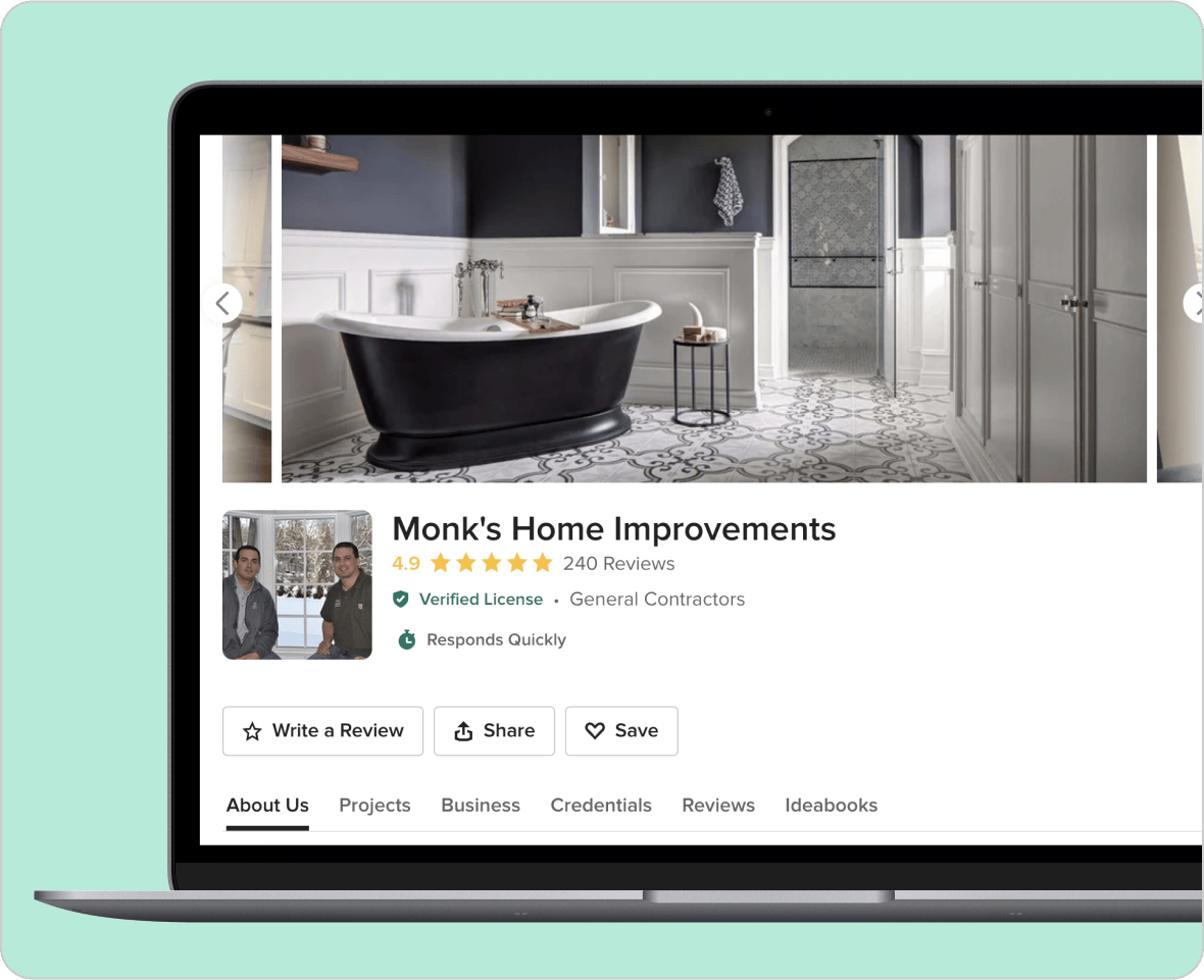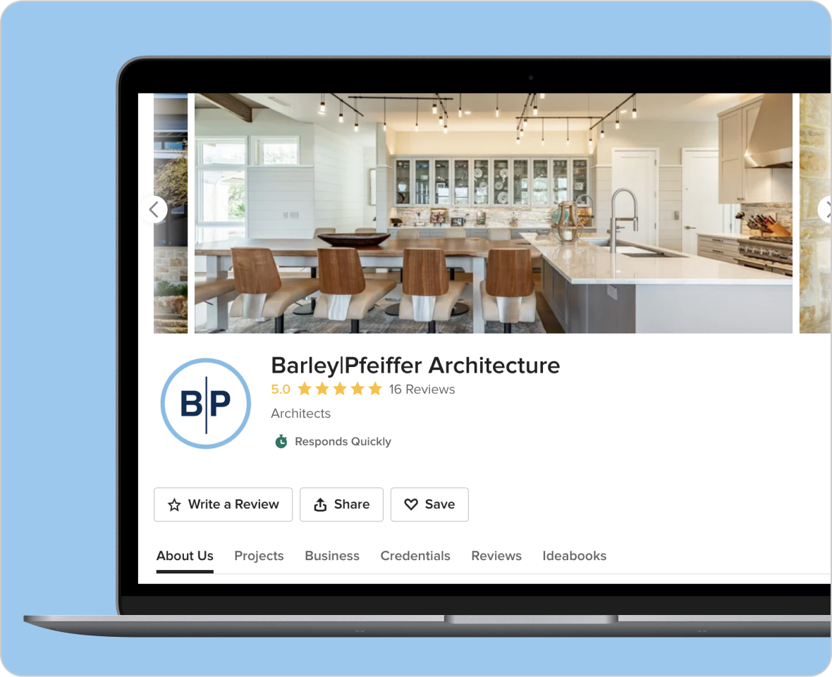 ...The leads we receive are in our target area and it has provided a verified source of customer reviews and displayed our work in a professional format. Clients like to see that we have such a robust profile on Houzz—there is value there.”