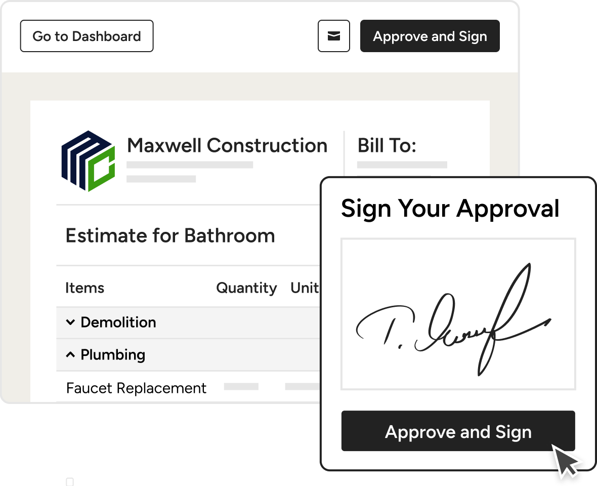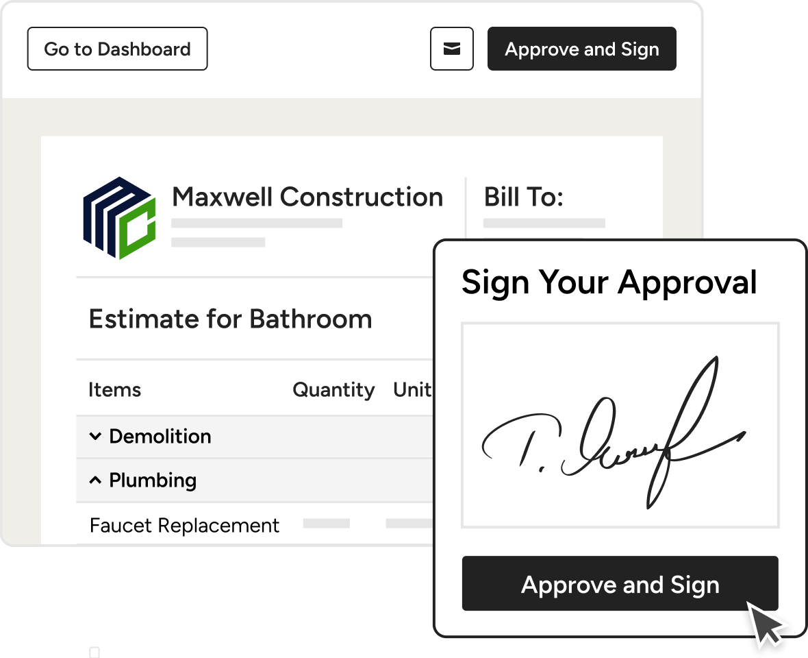 - Collect e-signatures on estimates, invoices or change orders