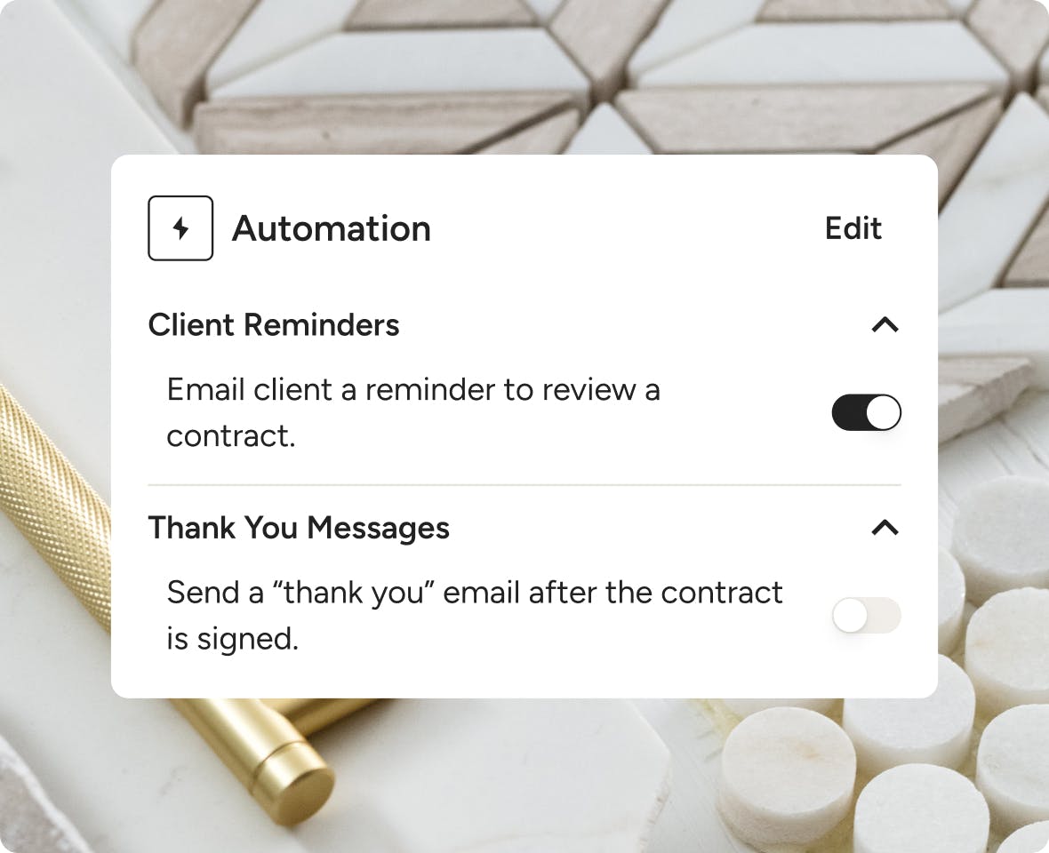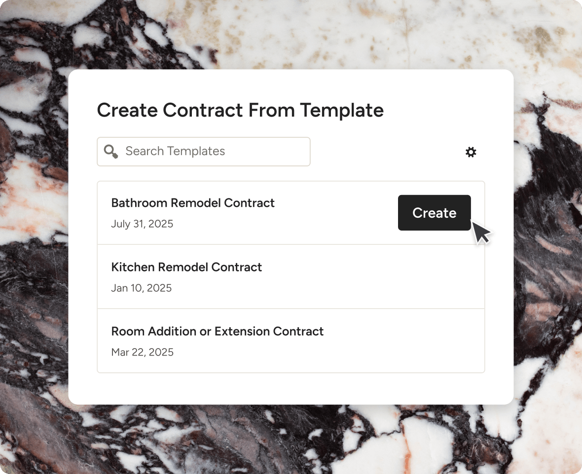 Consider our digital Contracts software your smart file cabinet in the cloud. Houzz Pro not only keeps record of all your agreements, it lays them out in one tidy place.