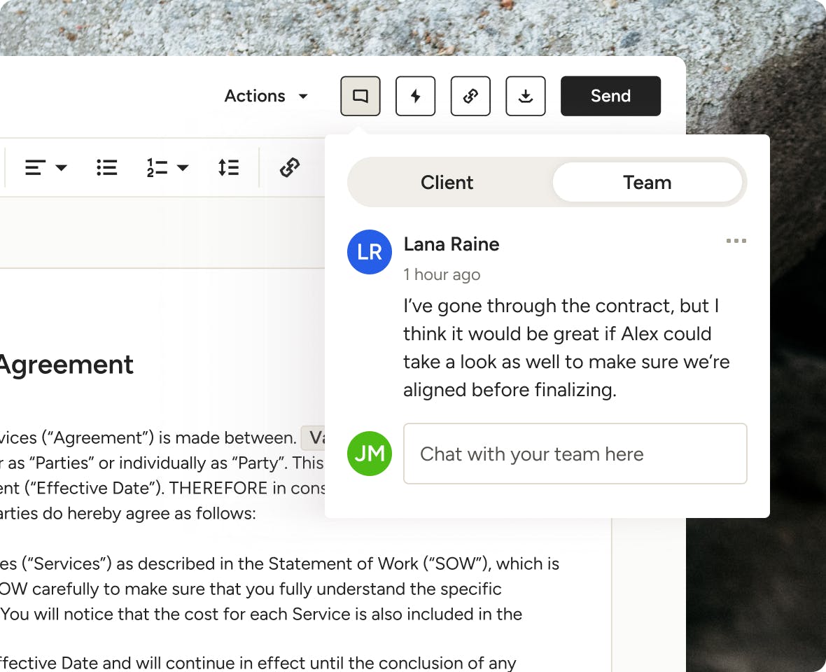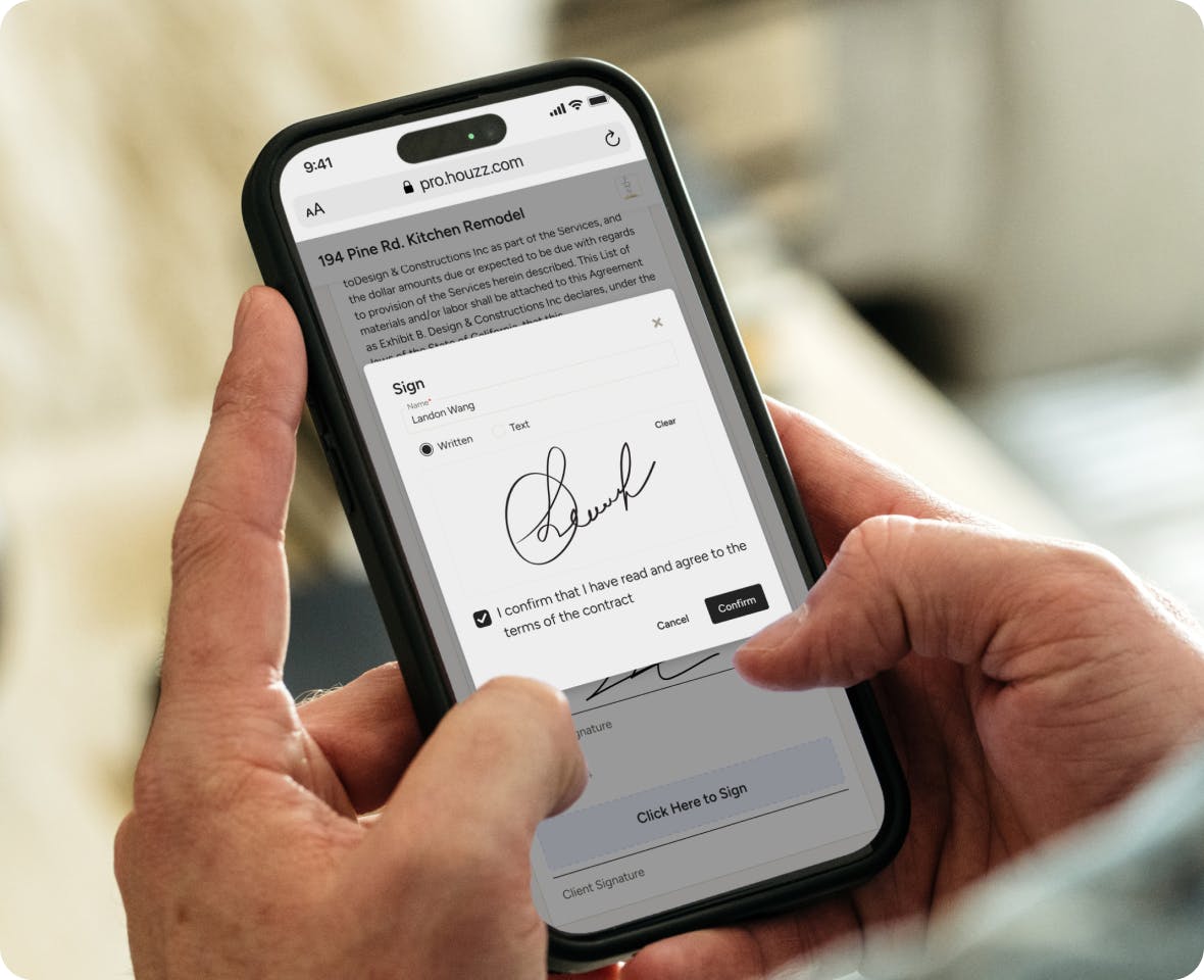Paperwork shouldn’t slow your pace. With Houzz Pro, you can speedily and seamlessly complete agreements. Let clients review, comment, and sign in a snap.