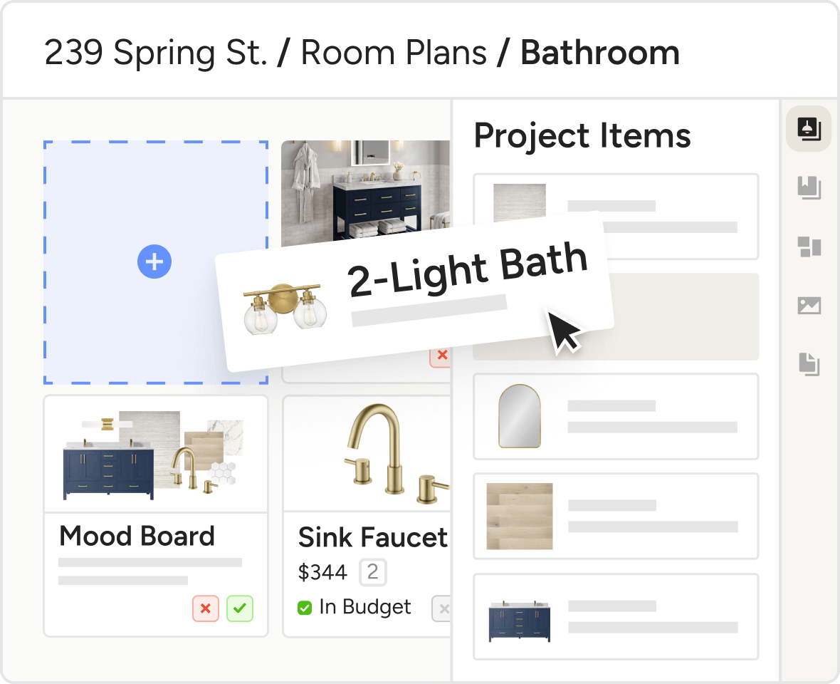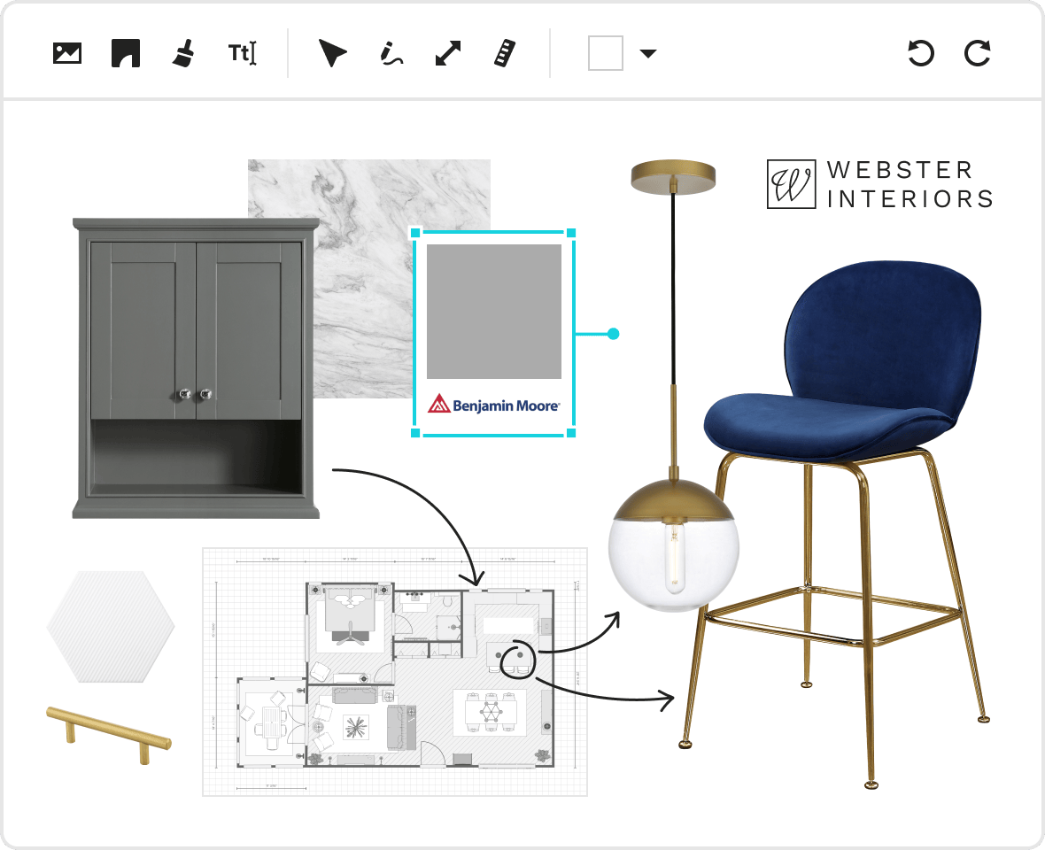 Set the tone for your boldest ideas with our interior design Mood Board creator. Easy to use and easy on the eyes, it's where products and inspiration come together to wow clients.