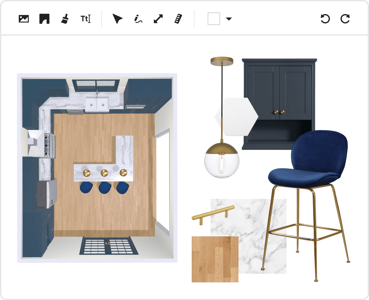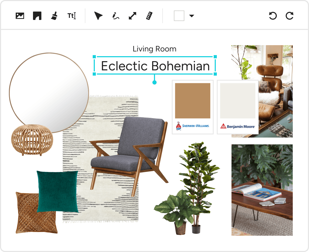 Bring it all together with some background color. It's just another way our room Mood Board maker helps you showcase your creative taste.