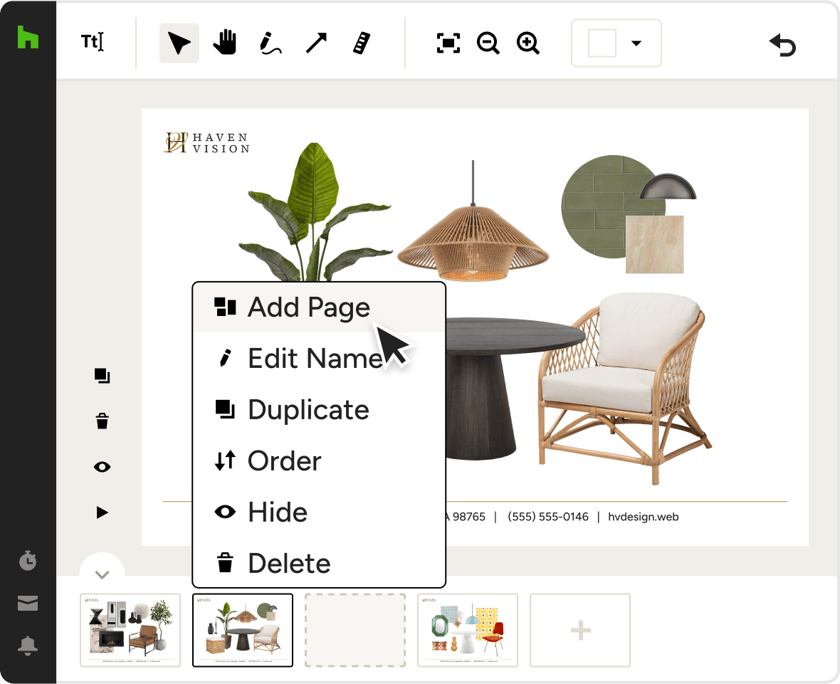 When it’s time to present your ideas, our mood board software can handle it all. Create beautiful, professional multi-page mood boards from scratch or from templates with your branding to showcase all the ideas you want to share, in one powerful presentation.