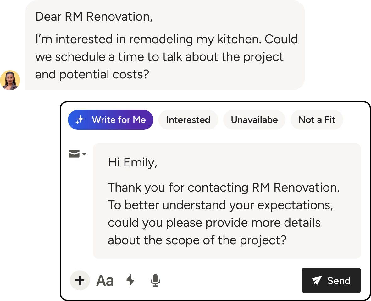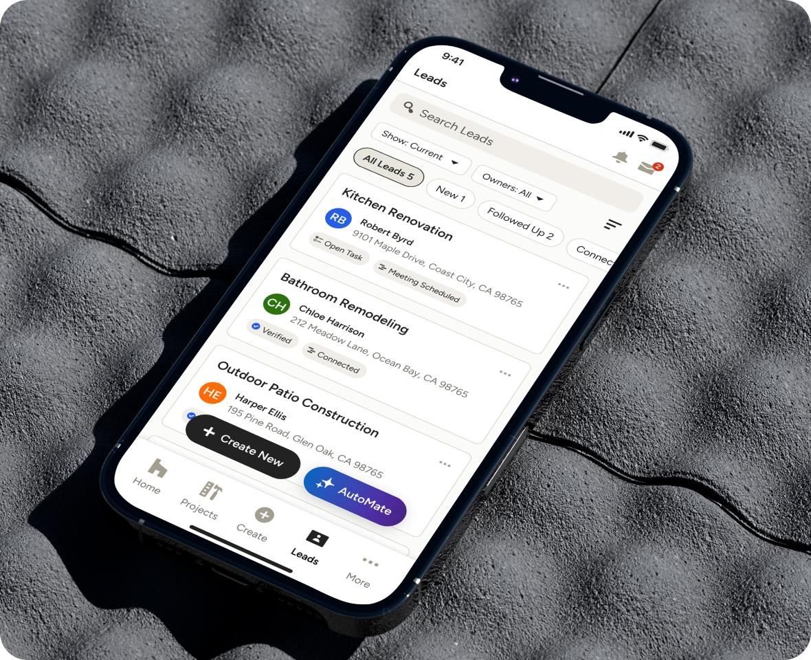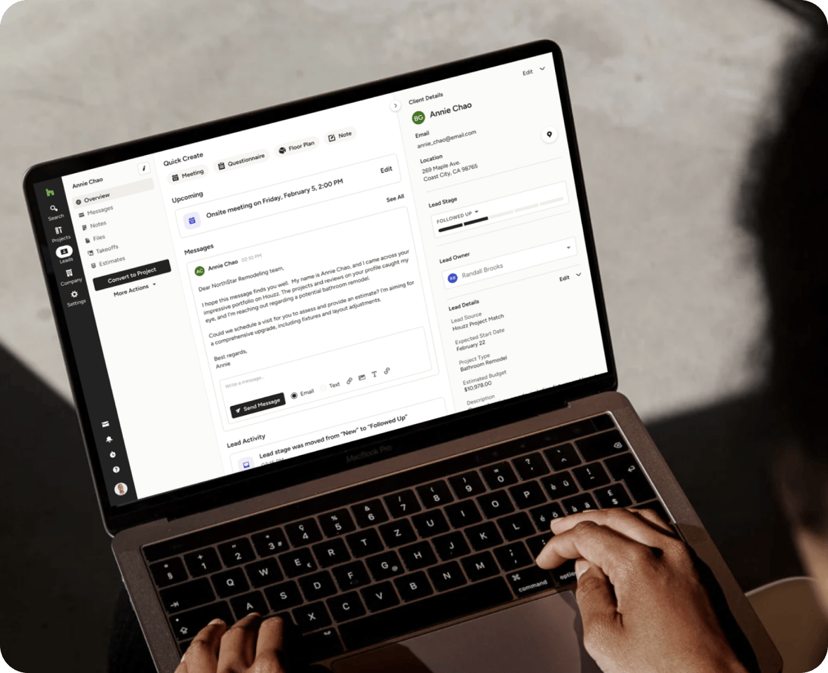 Time to turn prospects into projects. With Houzz Pro’s CRM software for construction and design, staying organized and in touch is easier than ever—helping you win the clients you want with less back-and-forth.