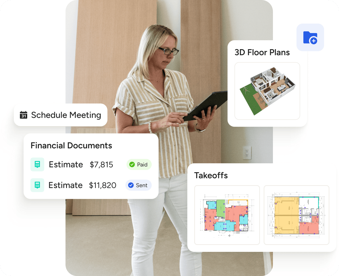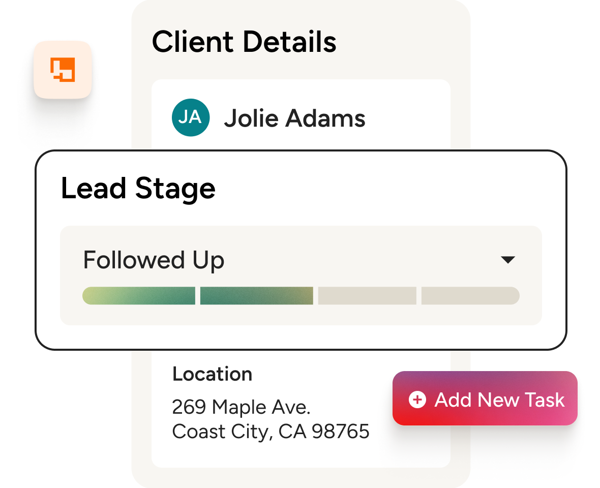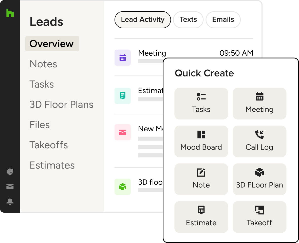 Love a good shortcut? Cue the Quick Create section of each lead's profile. Here, you’re a click away from crafting private team notes and Tasks, sending Estimates, and more — and even sharing 3D Floor Plans to help seal the deal.