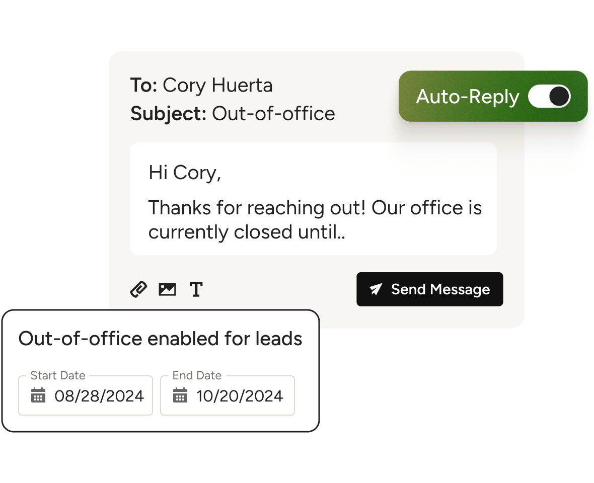 Click on any lead to pull up their full profile complete with contact info, a dedicated message center, and an activity stream that logs every conversation and action.