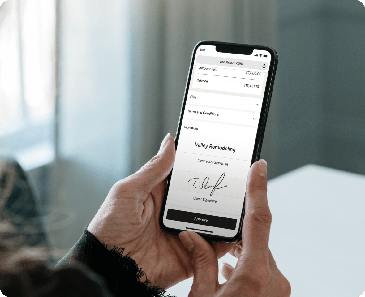 Don't let time-consuming old-school invoicing methods hold you back from getting paid how—and when—you want. With Houzz Pro, you can: