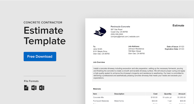 With our concrete estimating software, you can easily create estimates that build client trust and help you win more jobs, from the office or the field.