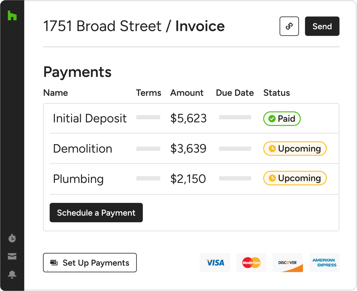 Don't let time-consuming old-school invoicing methods hold you back from getting paid how—and when—you want. With Houzz Pro, you can: