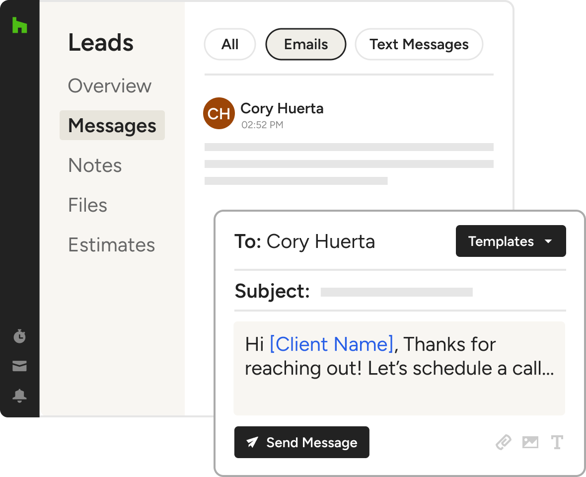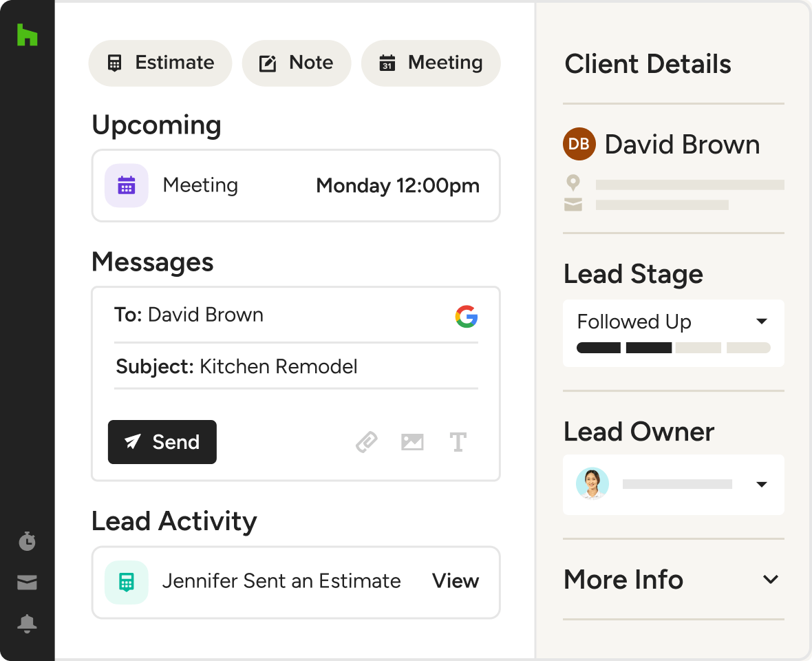Our CRM for construction companies helps you attract and communicate with clients all under one roof, in the office, or on the go. Follow-up, schedule meetings, share files, and more with ease.