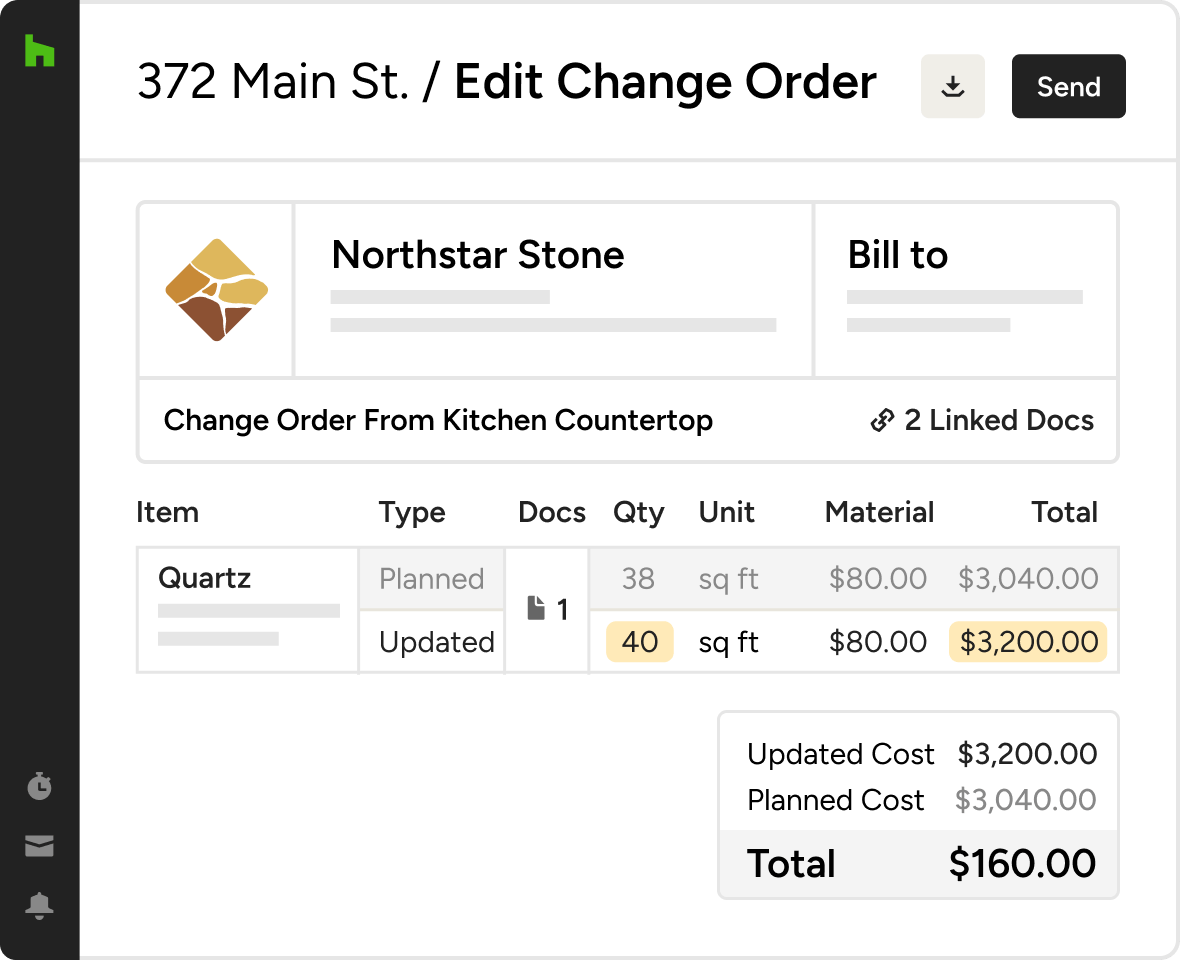 Easily create and send change orders to clients for approval via e-signature and online payment.