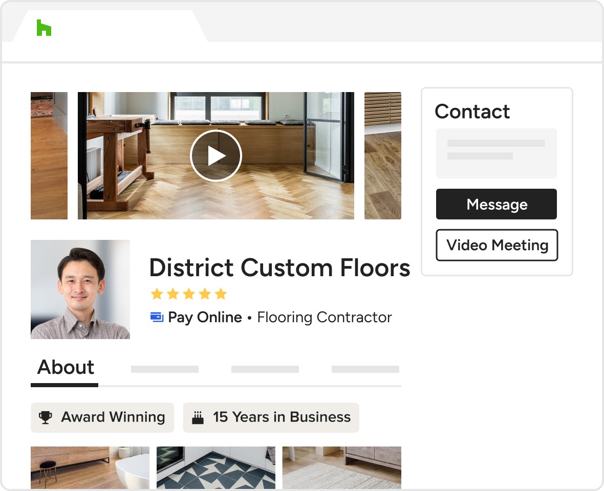 Does your flooring website template help you stand out and attract and convert new business? Houzz Pro flooring website design services provide custom sites that are designed to do just that and more.