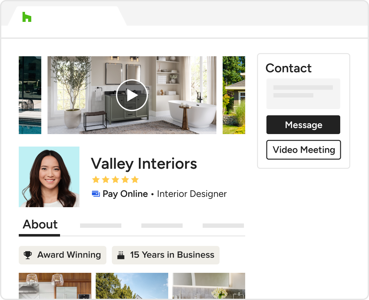 Discuss projects from the convenience of your home while building relationships face-to-face virtually. With our interior design lead generation program, leads book a video meeting with you directly from your profile or your directory listing. Or, you can share your personal meeting link via email or social media.