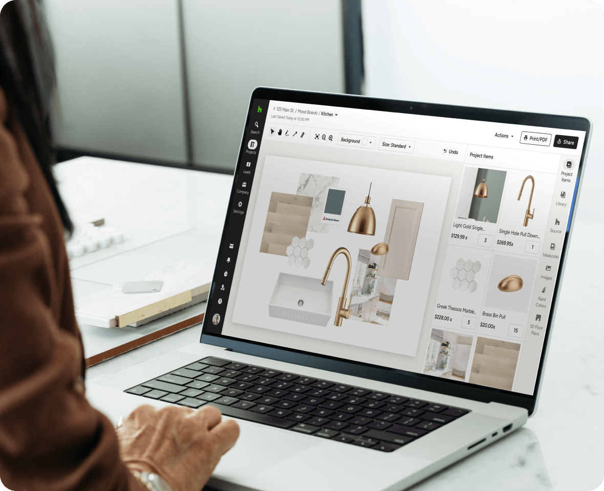 Going from concept to client approval is quick and seamless thanks to our kitchen and bath software's Selection Boards—the top tool for putting product selections in perfect view.