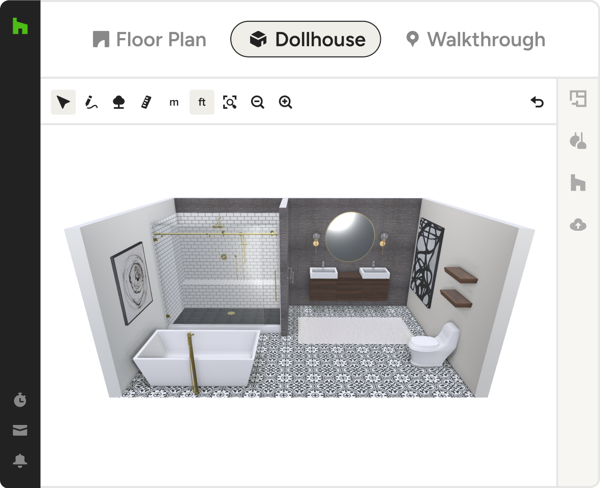 Winning projects starts with impressing leads. With Houzz Pro’s fully integrated kitchen and bath remodel 3D floor plan software, you can make dazzling presentations of any size space with AR-powered virtual walkthroughs and photorealistic images that work together to help move projects forward.