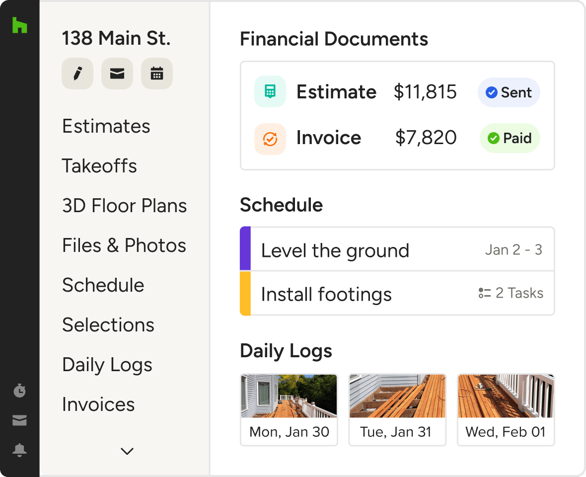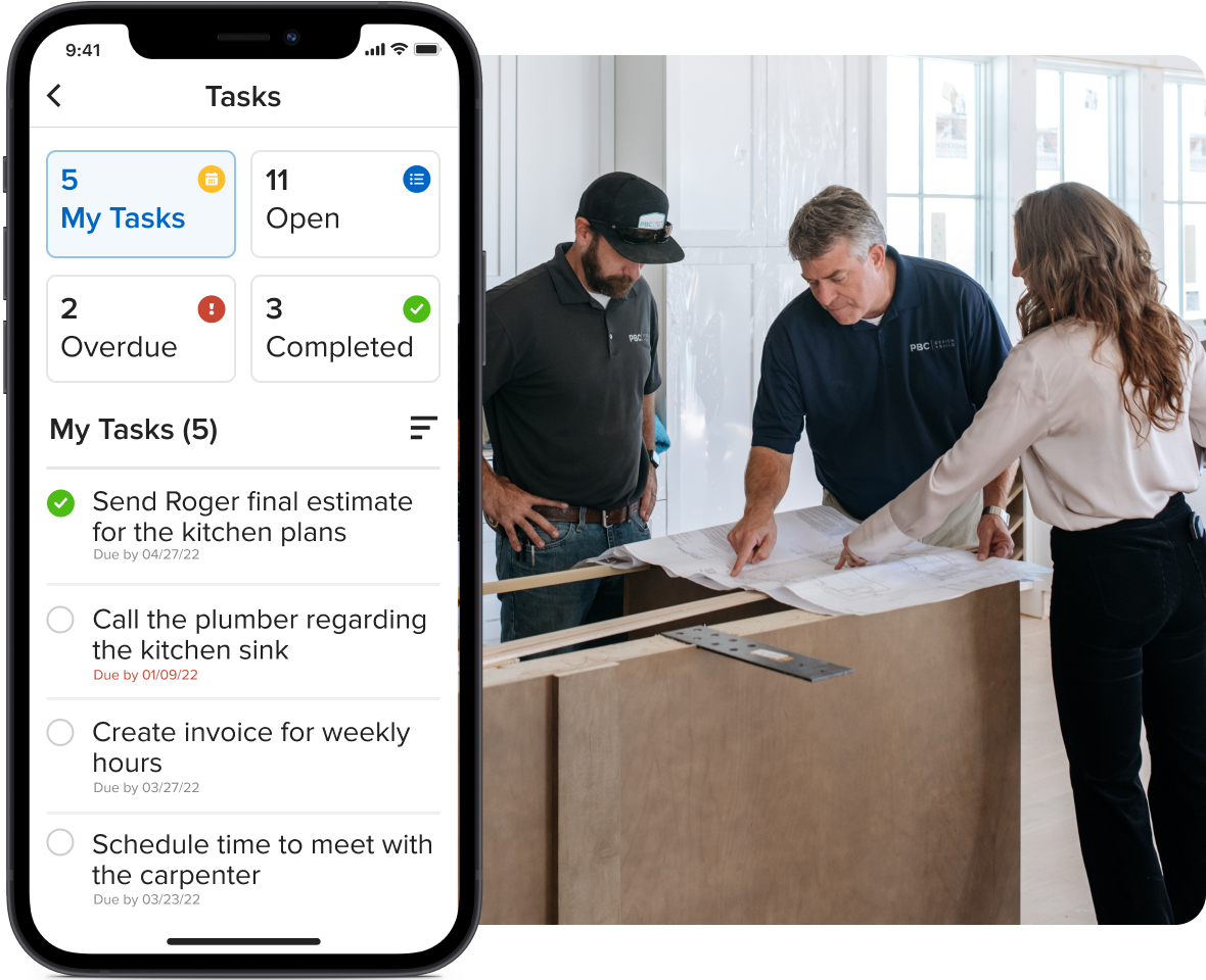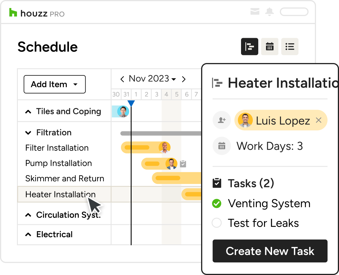 From client updates to invoices, keep every task neat and tidy with Houzz Pro.