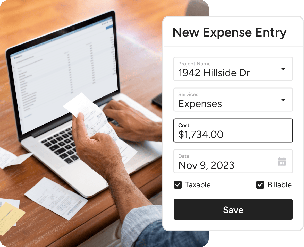 Houzz Pro makes it easy for you and your team to track any time you spend, or expenses you incur on a project, from the office or from the field.