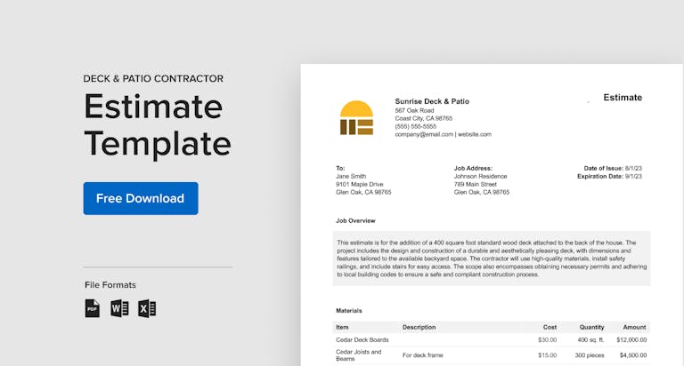 Get access to professionally crafted templates or start building your estimate from scratch when you jump into our free estimate builder demo. Try it out now for free—no signup or login required.