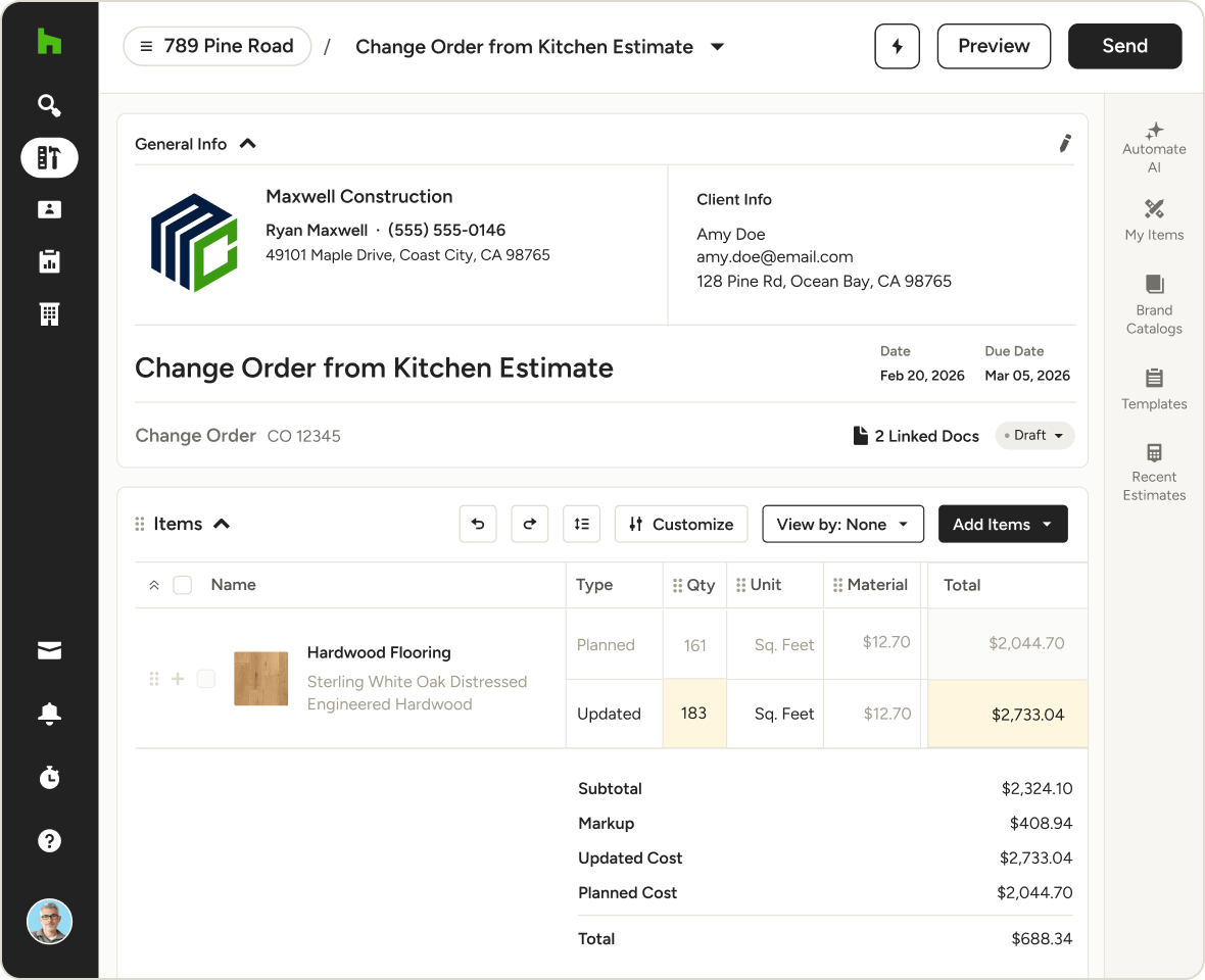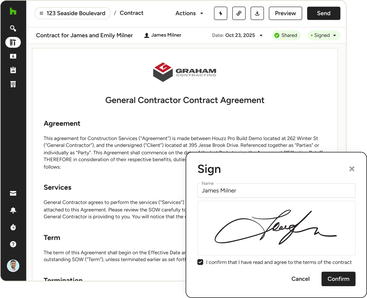 Built for teams who take pride in every project, Houzz Pro is more than just remodeling contractor software. It’s the industry’s top toolkit that helps you build it all—client trust, a profitable business, and rock-solid renovations.