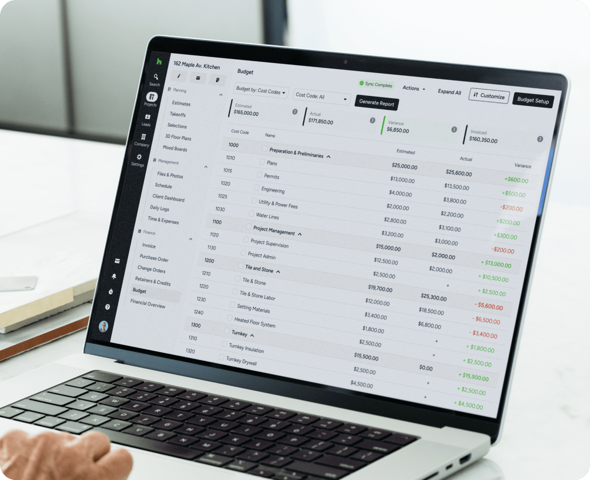 Start your job costing on the right foot with our remodeler software’s accurate, visual Estimates—organized by Cost Codes, phase of construction, or CSI division.