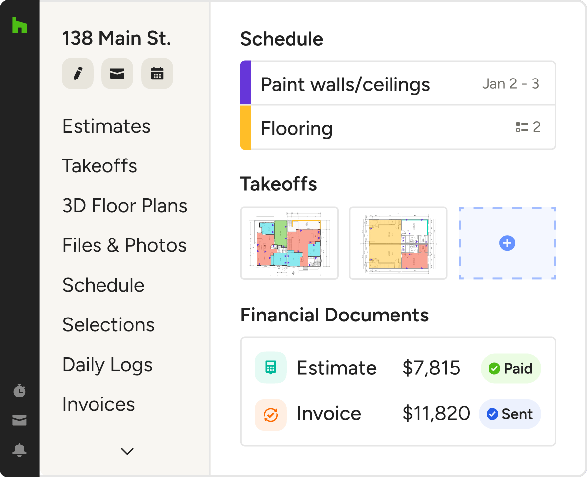 From client updates to invoices, keep every task neat and tidy with our home remodeling project management software.