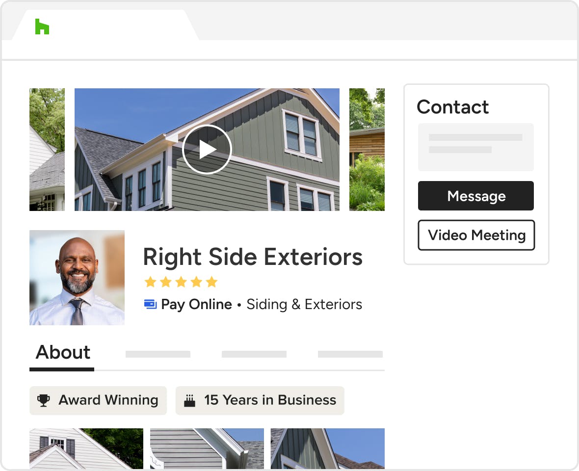 Discuss projects from the convenience of your home while building relationships face-to-face virtually. Let siding leads book a video meeting with you directly from your profile or your directory listing. Or, share your personal meeting link in email or social media.