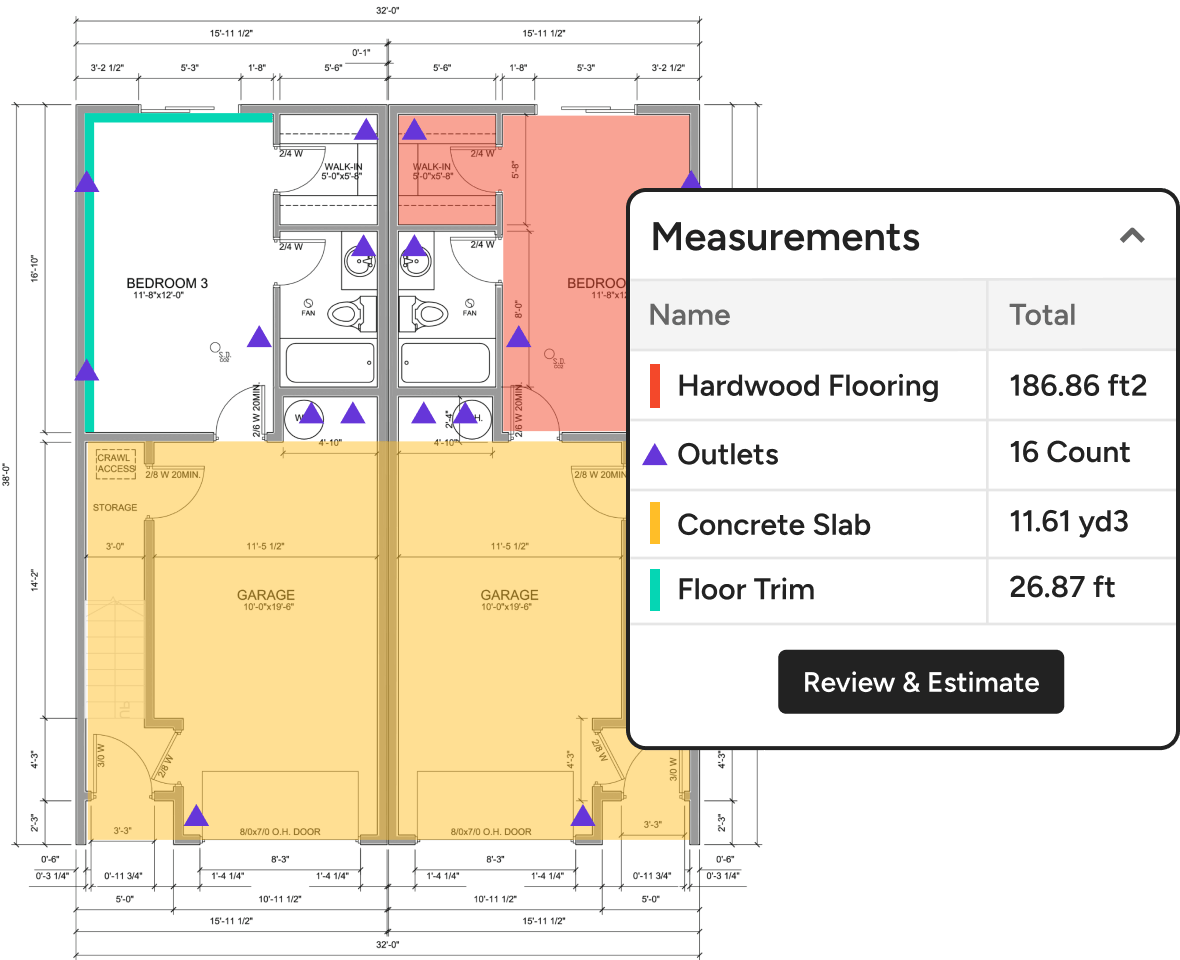 Measure almost any space, complete complex calculations, and build client-ready bids before the competition. See how our takeoff software takes it all on.