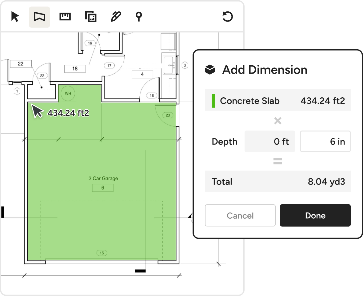 Put down the calculator. Our concrete takeoff software helps you estimate up to 10x faster without printing plans.