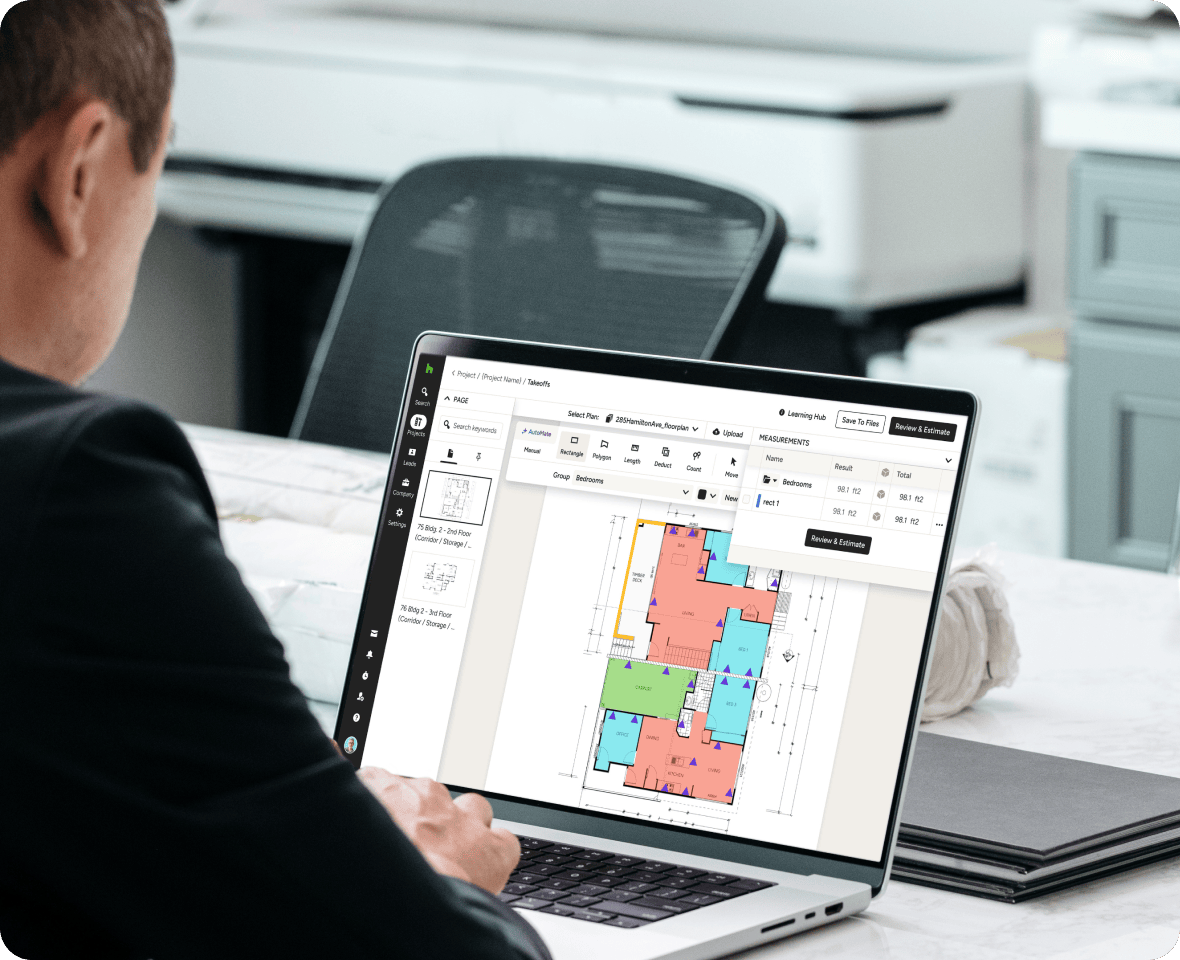 The Houzz Pro insulation Takeoffs tool is your secret superpower in the battle of slow response times and lost bids. Ditch the printer and calculator—the late nights and costly mistakes. Start bidding jobs up to 10x faster with our insulation takeoff software.