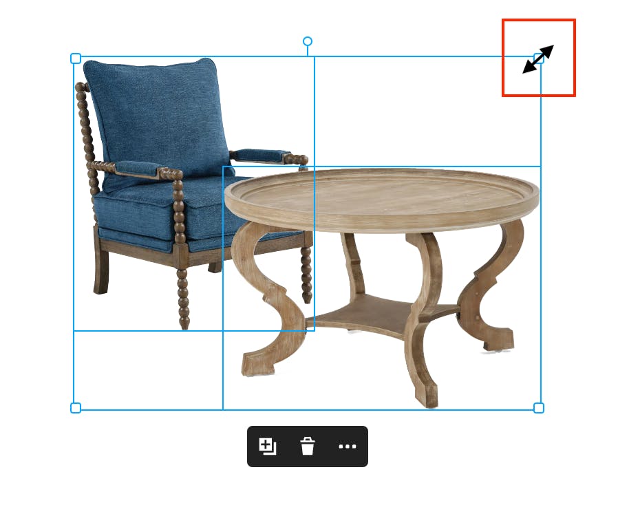 The first option you have in the expanded menu is to duplicate the image. Let’s say you want to showcase 2 matching chairs, you can simply click Duplicate to add the exact same image to your Mood Board.