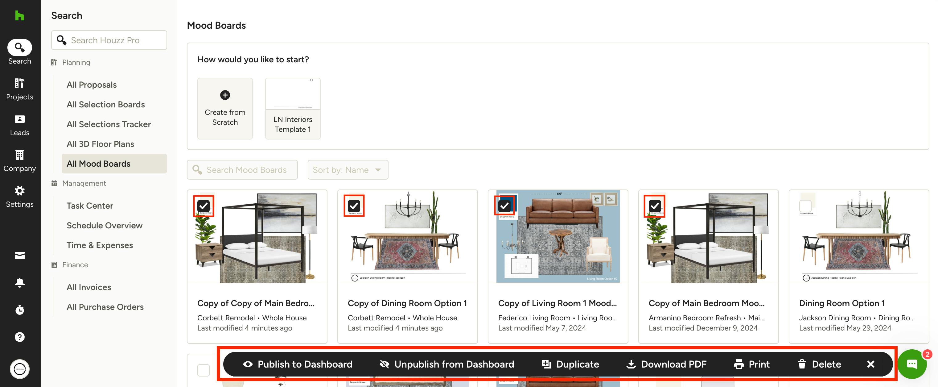 You can also access this page by clicking on the Mood Board icon in the Create New section of your Houzz Pro homepage.