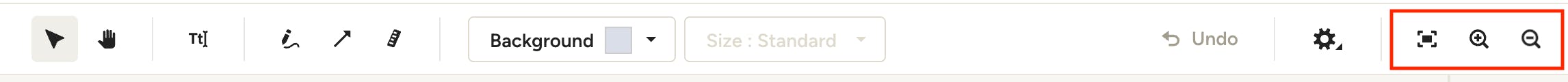 By selecting the hand icon, you can pan to specific areas of your Mood Board without selecting or moving any elements. This is particularly handy when you are viewing the Mood Board zoomed in.