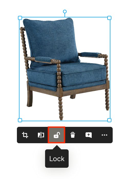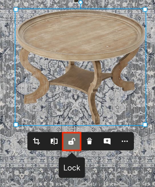 To prevent items from being moved accidentally, you can lock them in place by selecting the item and clicking the lock icon in the menu. This will stop the item from being moved, resized or edited in any way until you unlock it. You can select multiple items and lock them all at once.