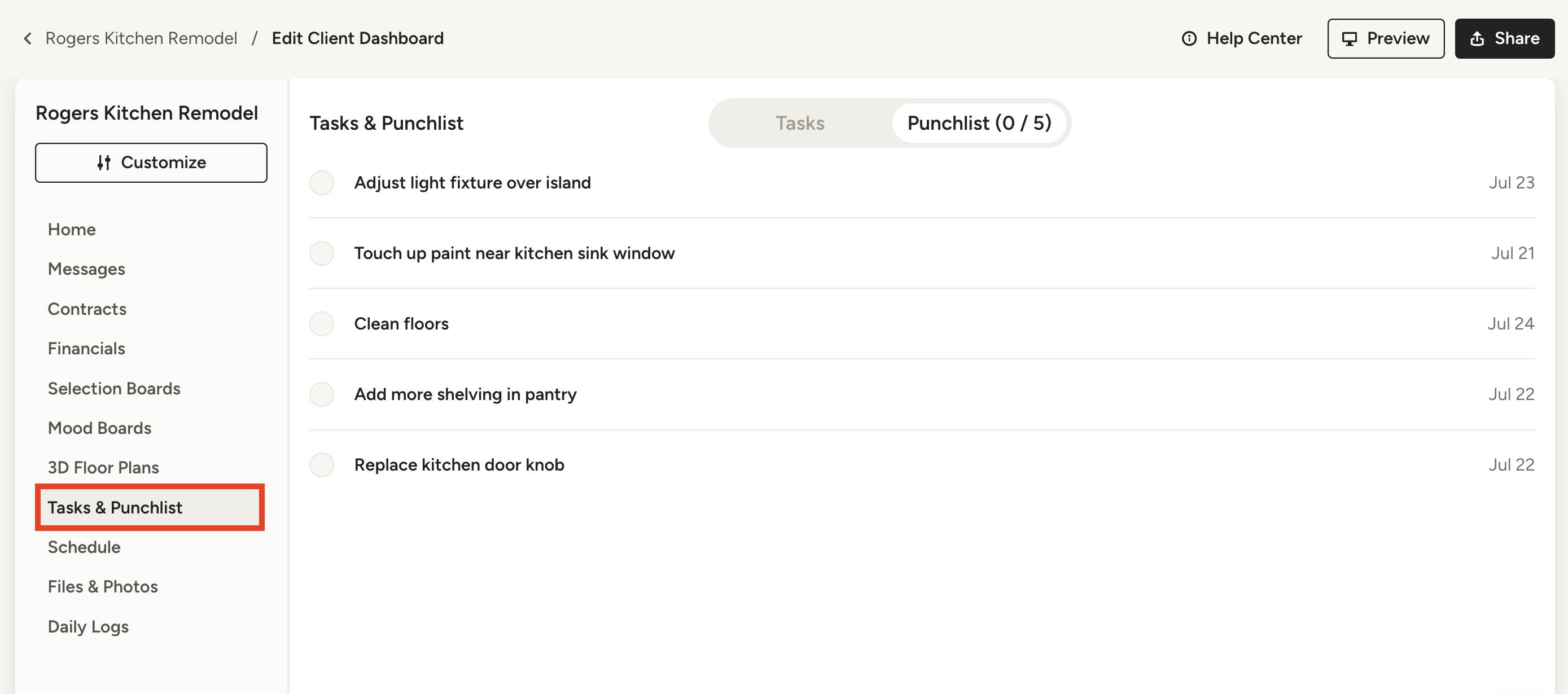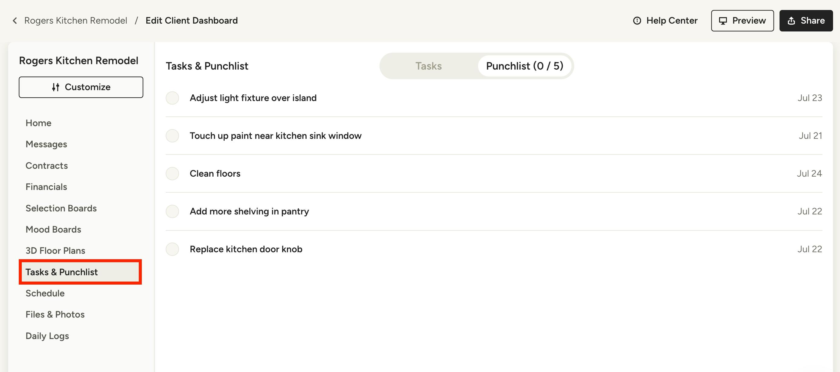 Add Punchlist to Client Dashboard