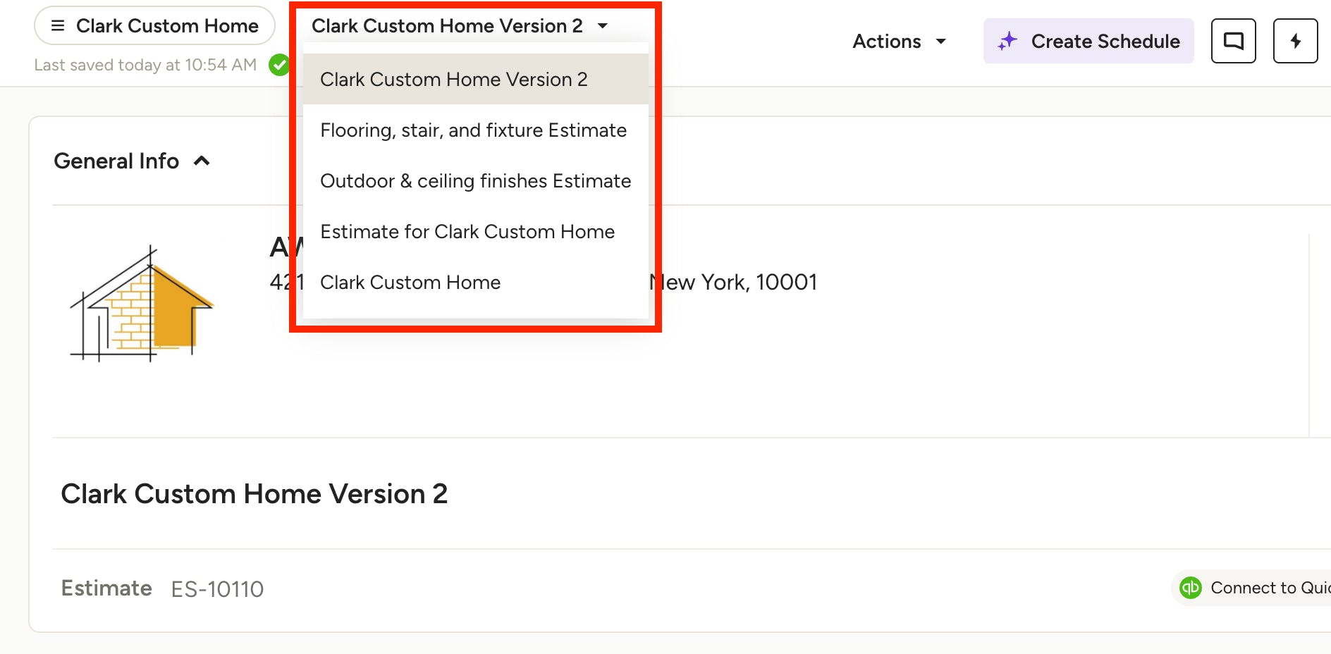 If you are ready to create an estimate, make sure you are on the correct View, then click Create Estimate at the top of your summary. You can choose to create a brand new estimate, or you can duplicate and edit a previous estimate.