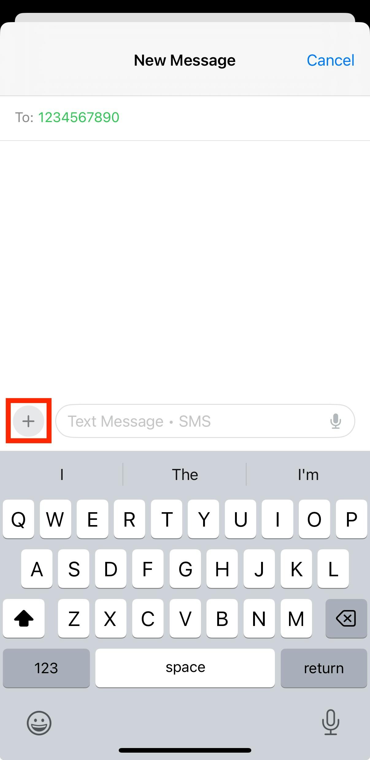 If you have an iOS device, you can also request a review directly from a client via text message. To do this, go to the Messages section on your device, then open up the relevant text thread. Click the + sign next to the text box.