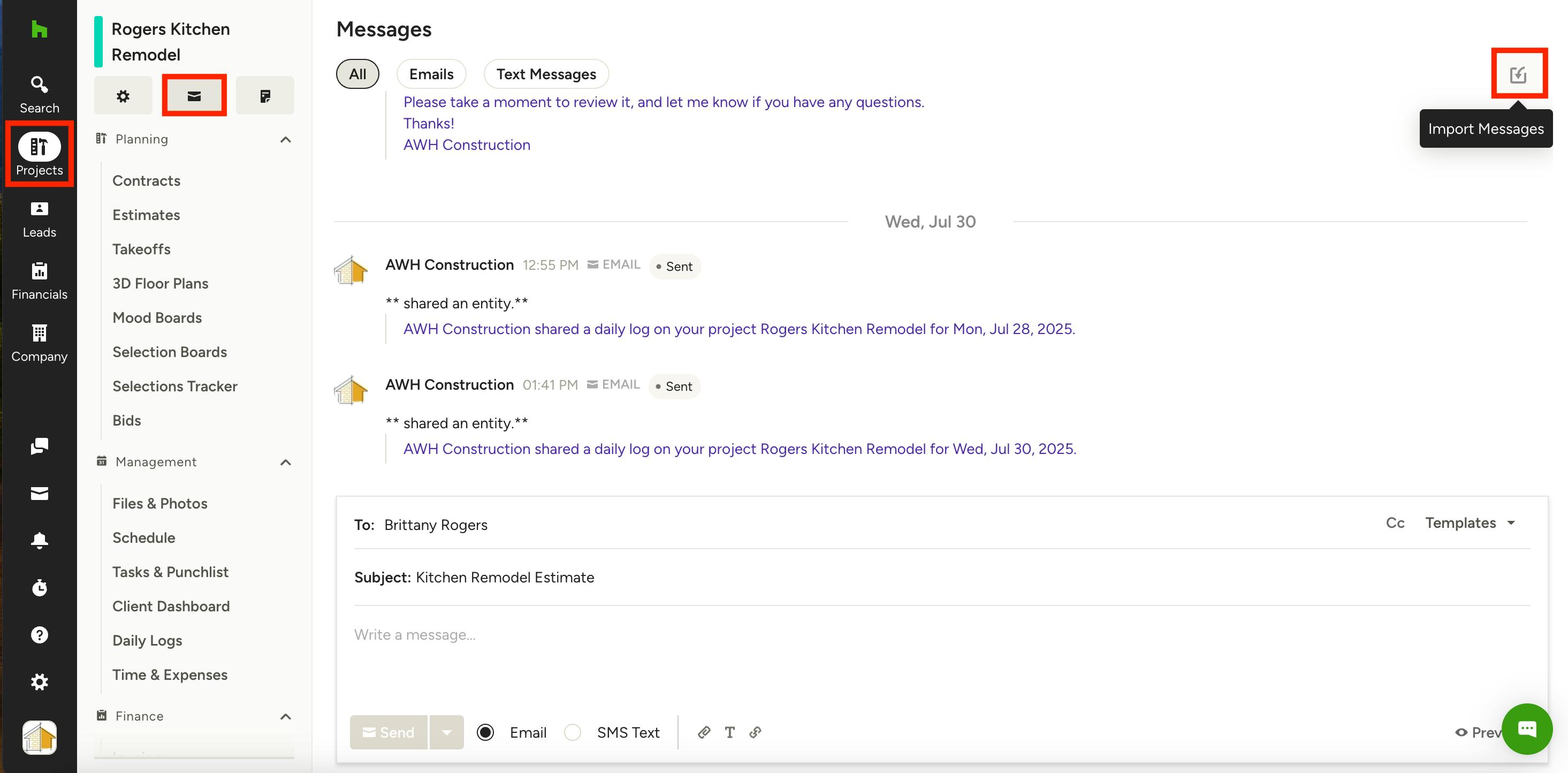 Staying on top of client and lead communication is a key part of running a successful business. While you can always message clients and leads within Houzz Pro directly, you can also import messages from your email and add them into the software.