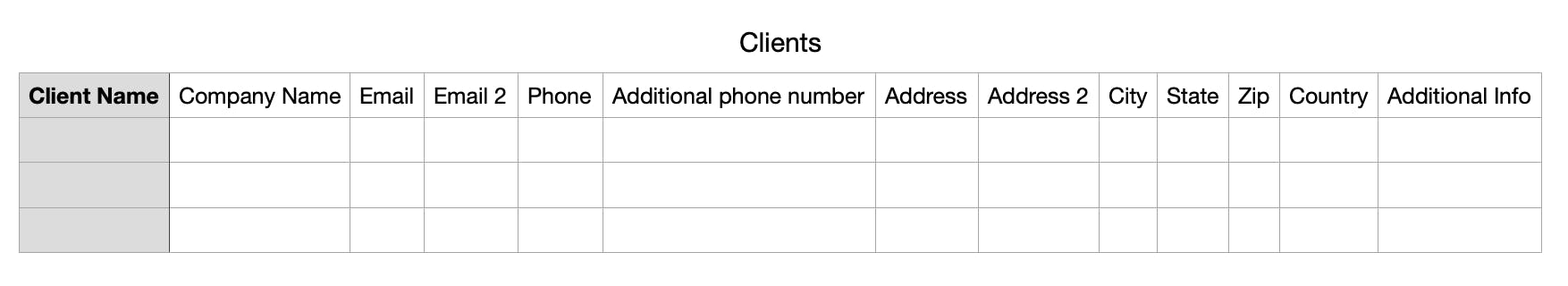 4. Open the downloaded template and fill in your clients, or copy the template formatting on your own file to match.