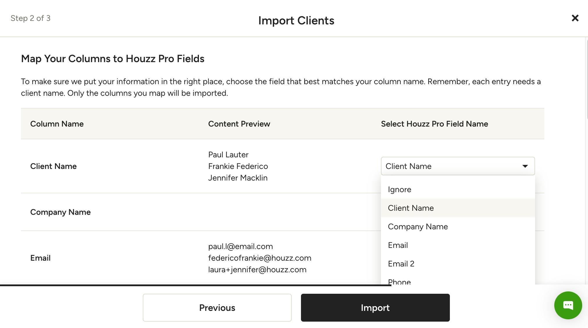 6. Upload the file to the Houzz Pro contact import (Step 6 in the section above).