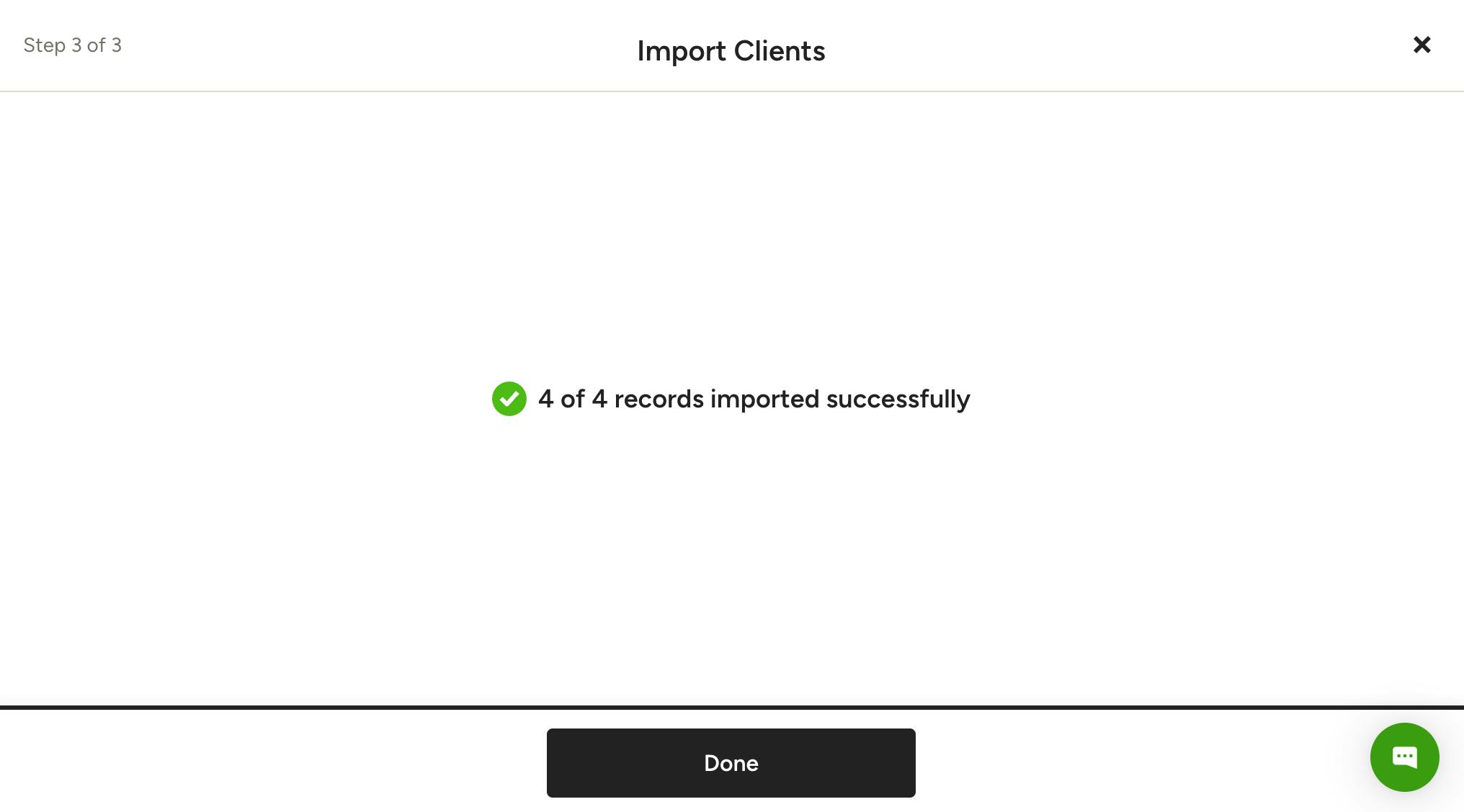 8. If your file was imported successfully, you will see a confirmation of how many records were successful. Click Done to return to your Clients page.