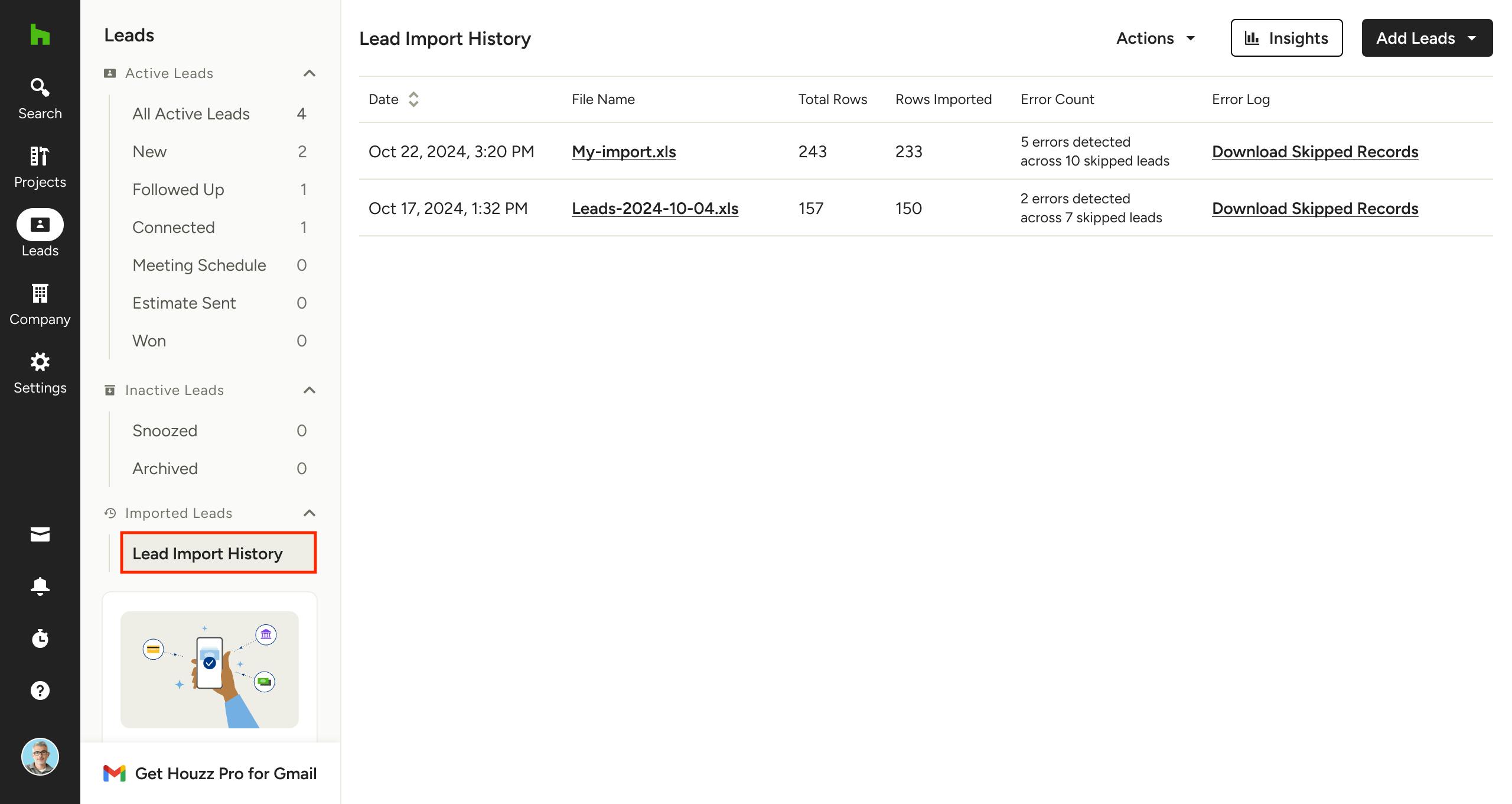 Lead Import History