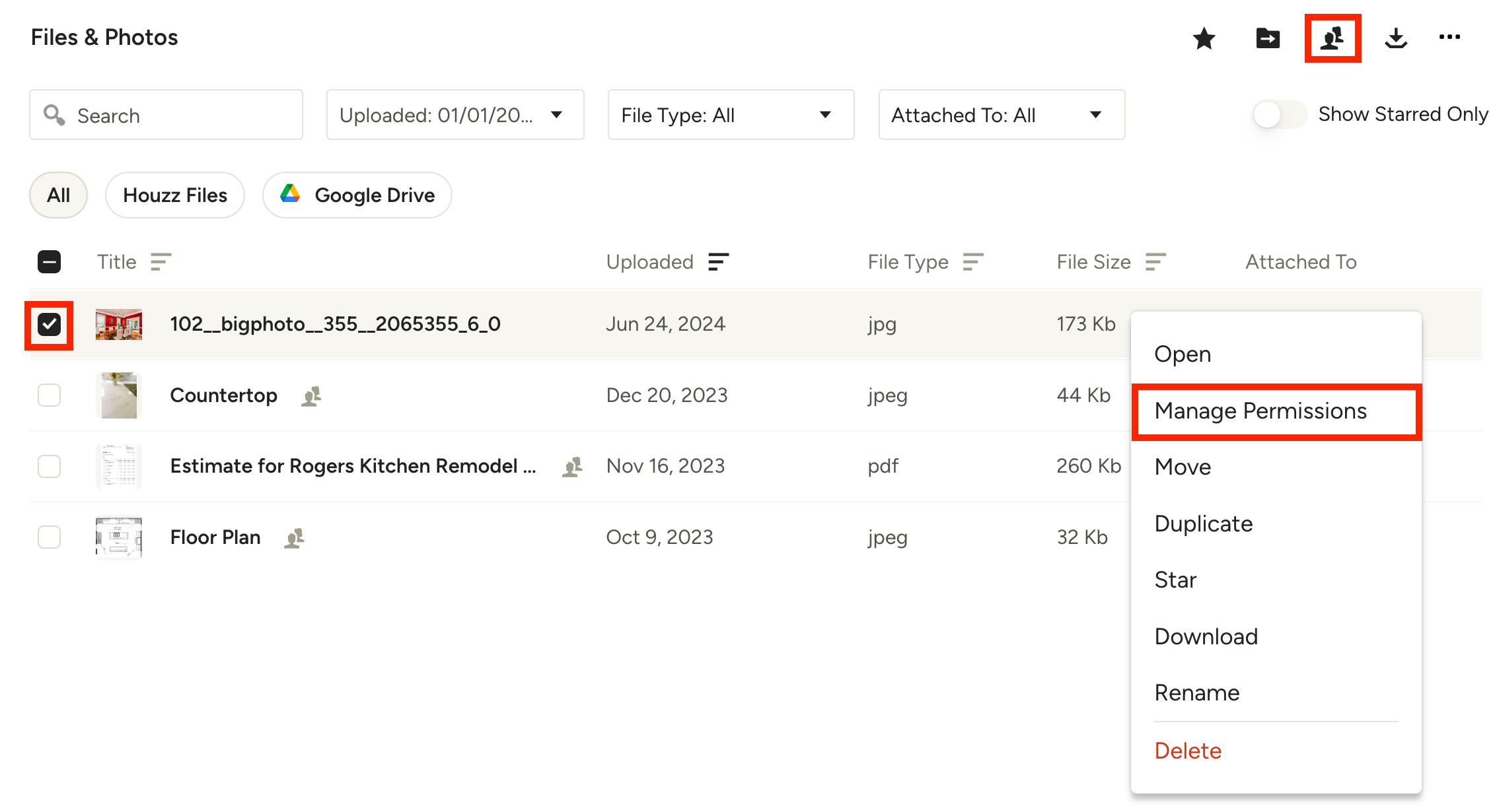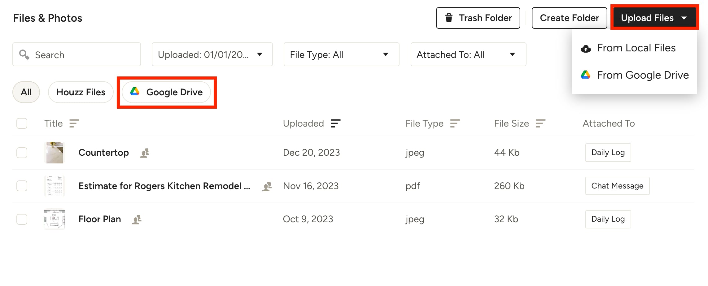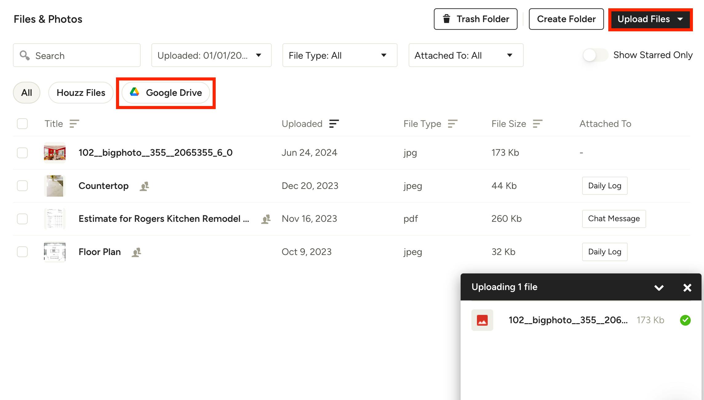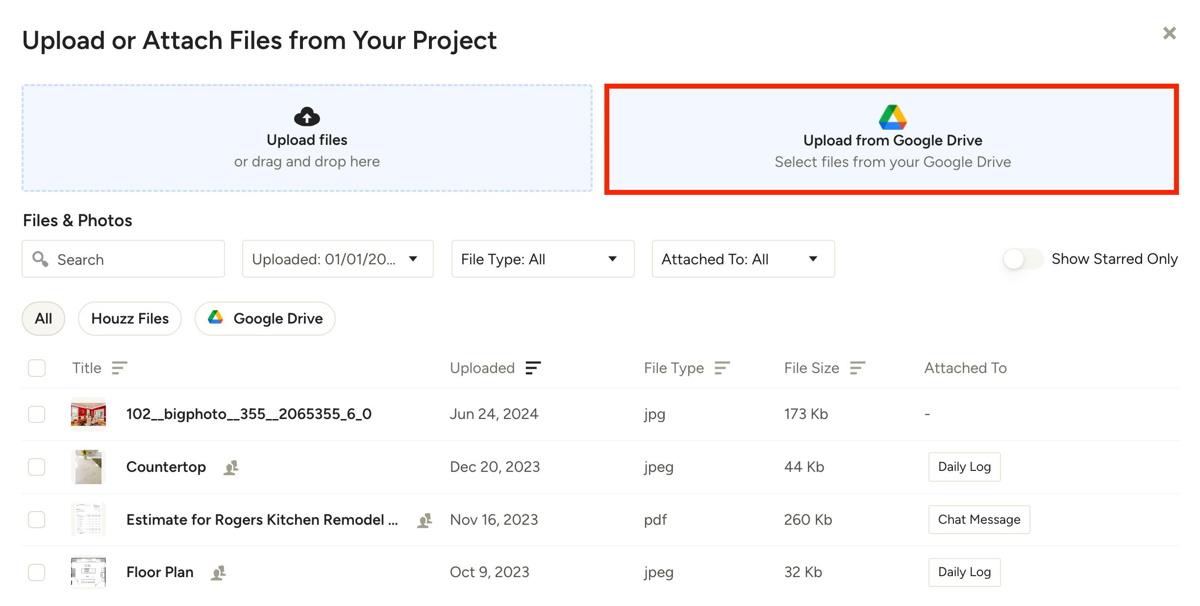 Your Google Drive will now be accessible throughout Houzz Pro.
