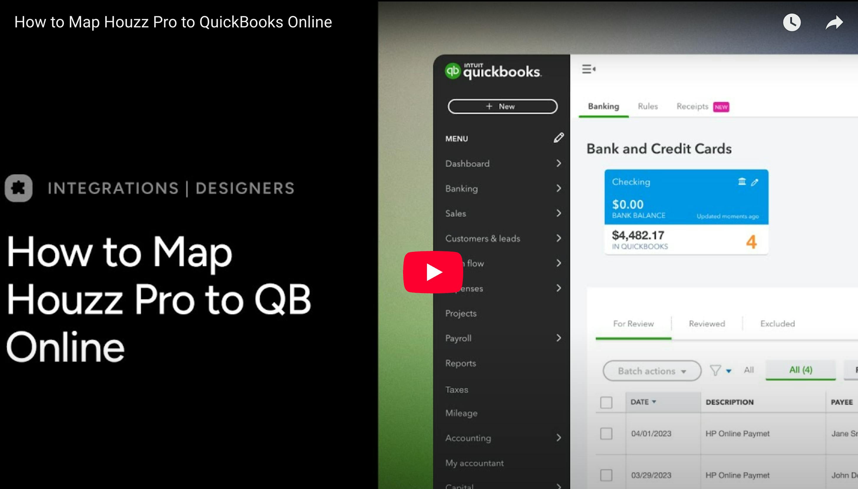 How to Map Houzz Pro to QuickBooks Online Chart of Accounts