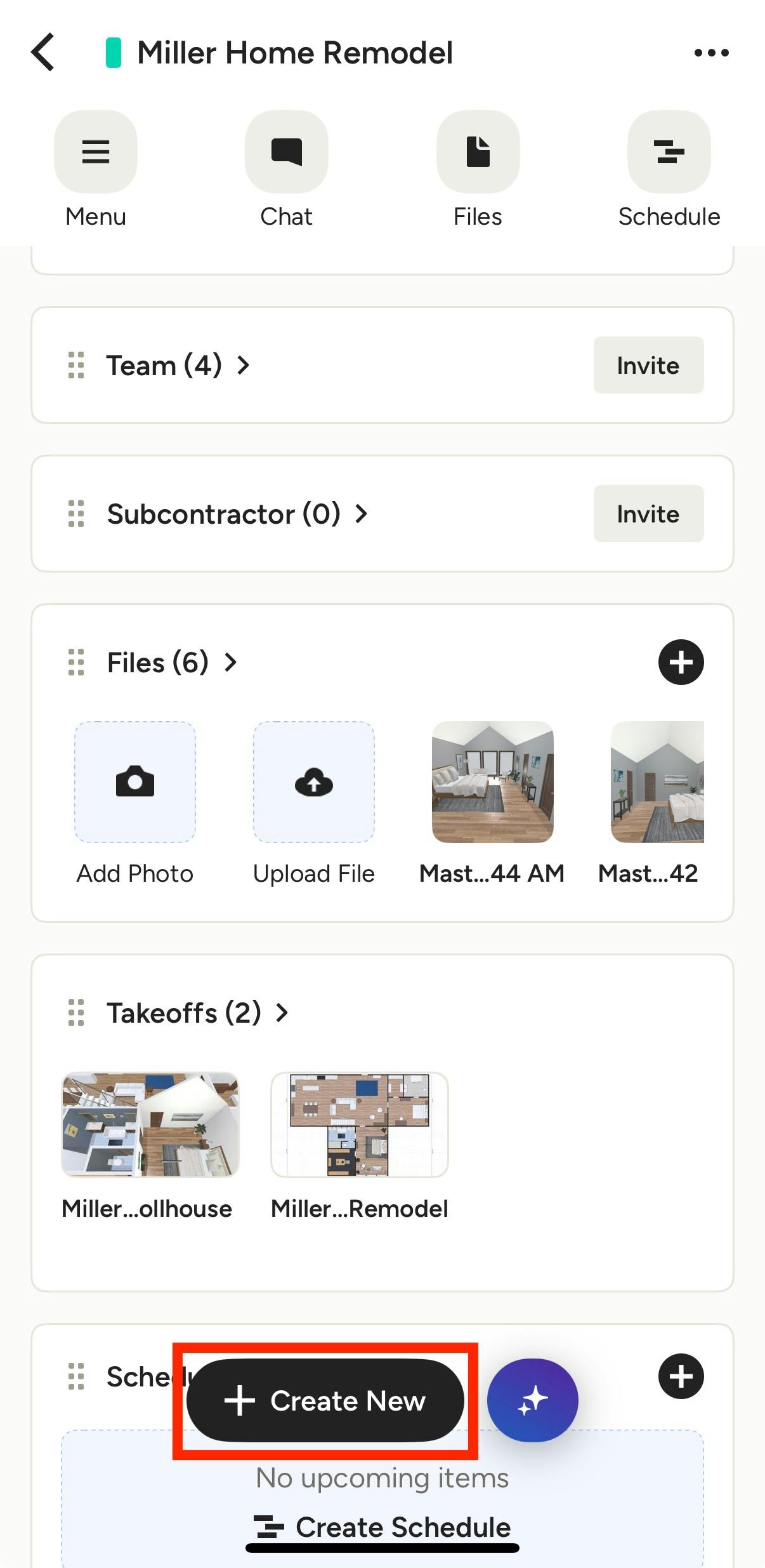 You can also open up an individual project or lead, tap Create New, then select 3D Room Scan from the menu.