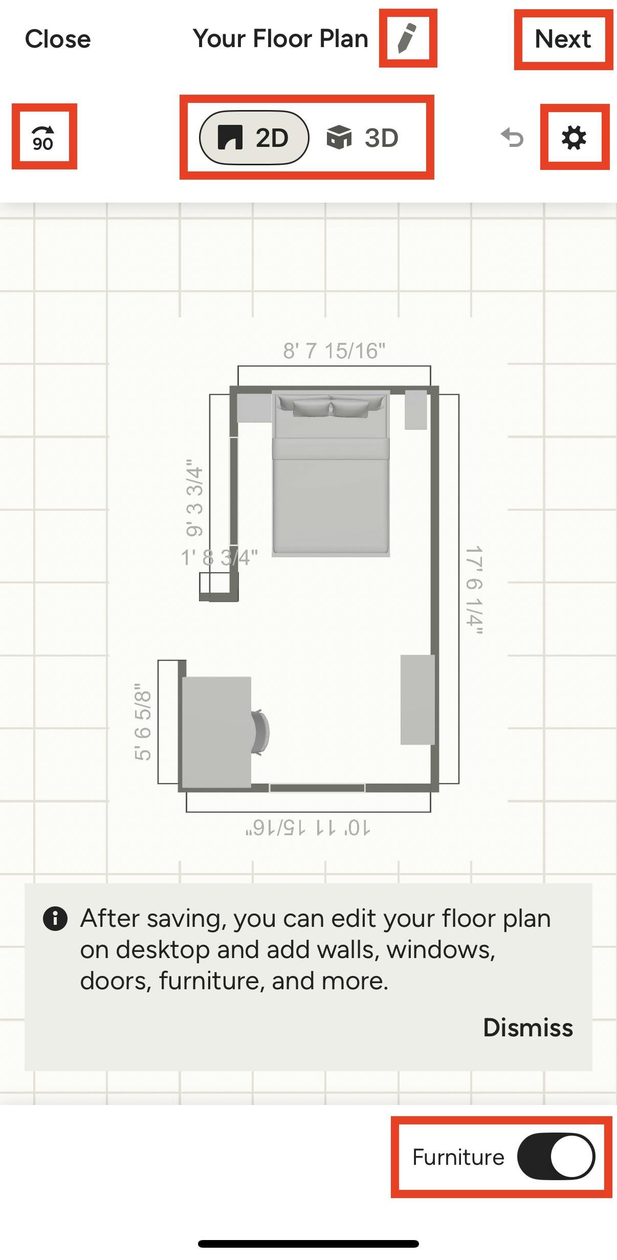 Be sure to tap Next in the top right corner to move towards saving your floor plan.