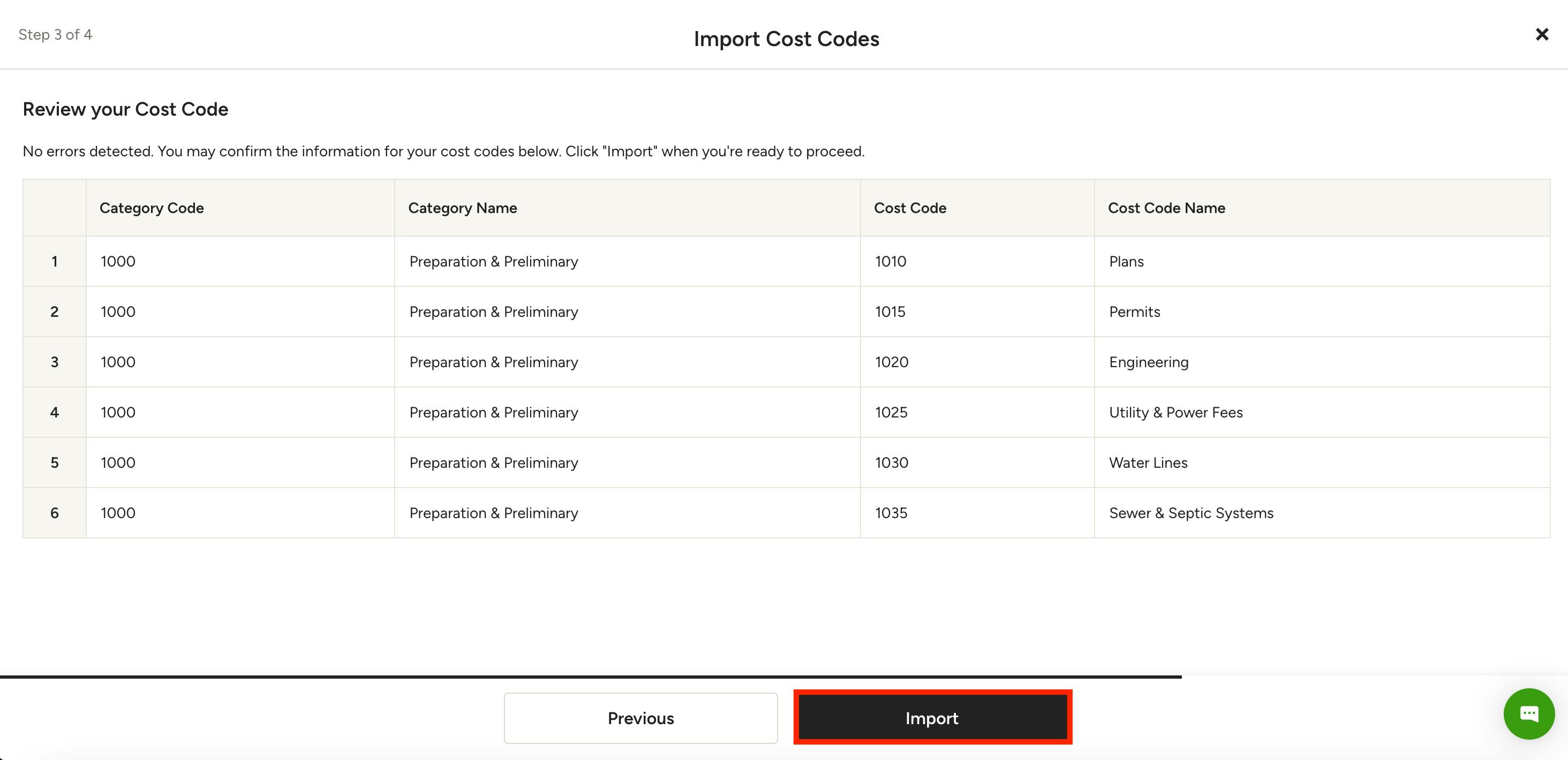 Once you have selected the relevant cost codes for your company, select Import Selected Cost Codes.