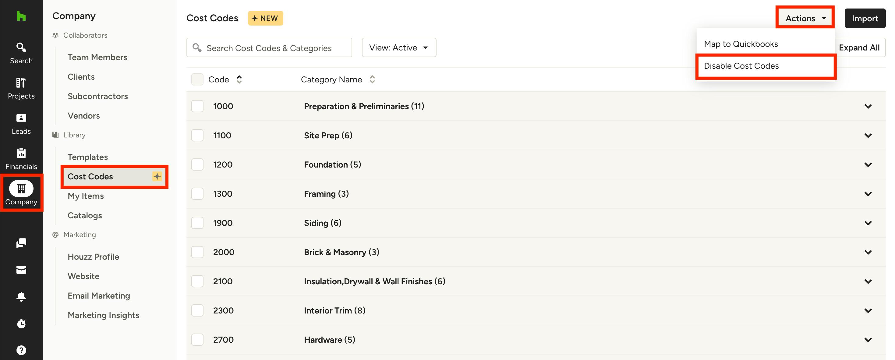 Please Note: Because cost codes affect the bookkeeping and overall financial organization of your business, please consult your bookkeeper or accountant before implementing them for the first time. Cost codes are meant for Pros who are familiar with them and actively job costing for their projects.