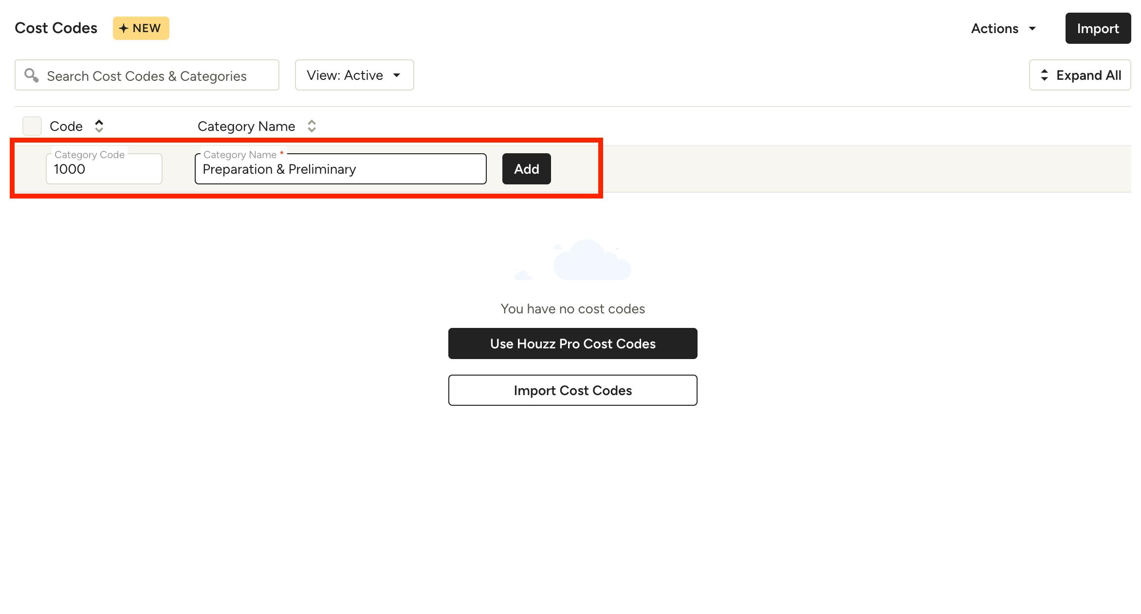 If you decide to manually create all your cost codes directly within Houzz Pro, you can do this as well.