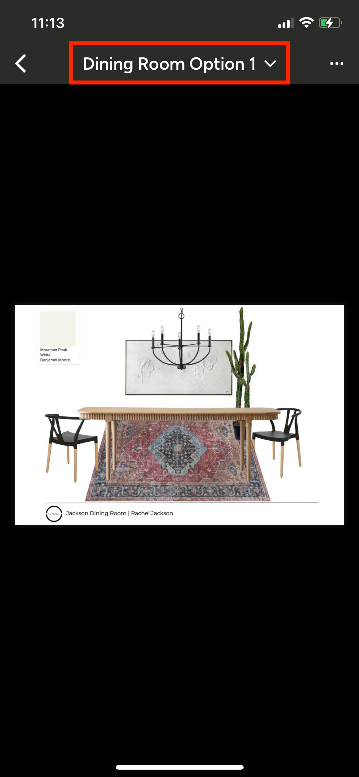 When viewing a mood board, you have the ability to quickly jump to other mood boards within the same project by tapping the title at the top to bring up Mood Boards From This Project, then tapping the one you want to switch to.